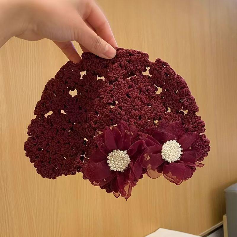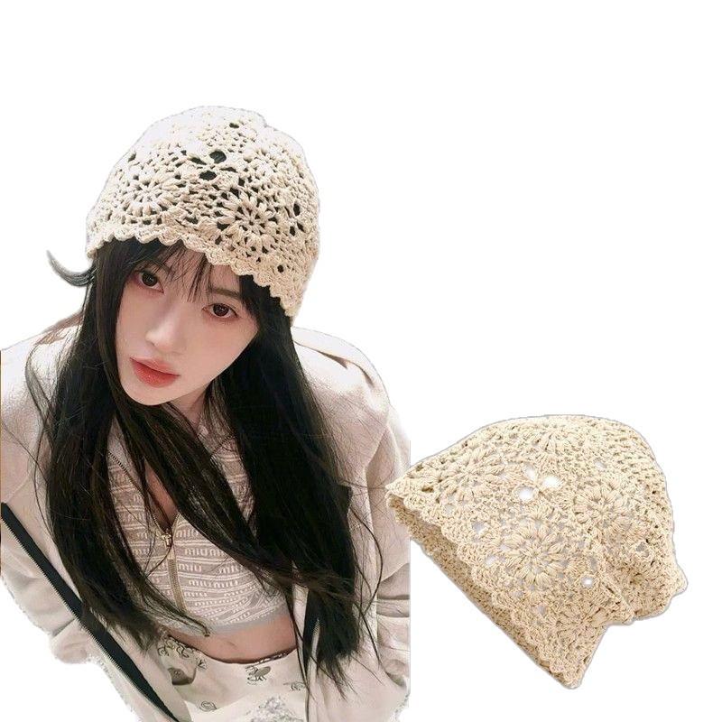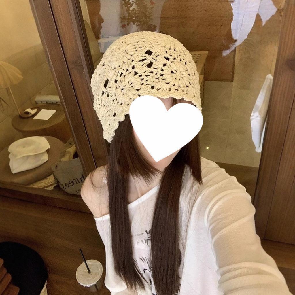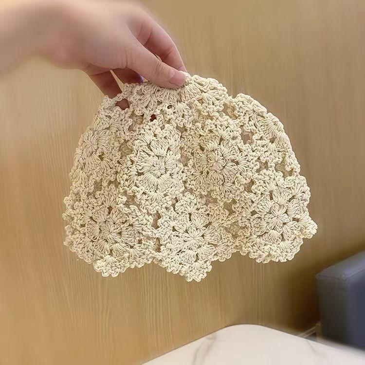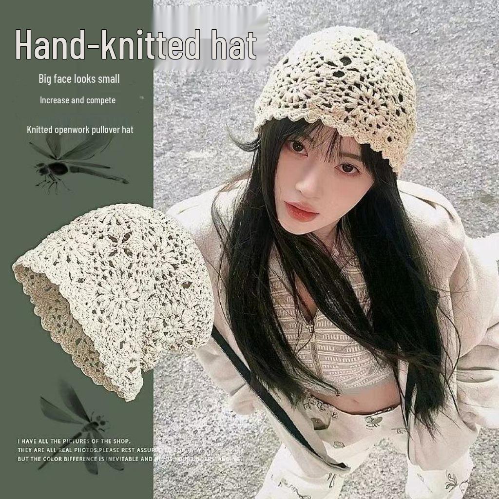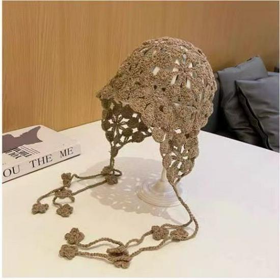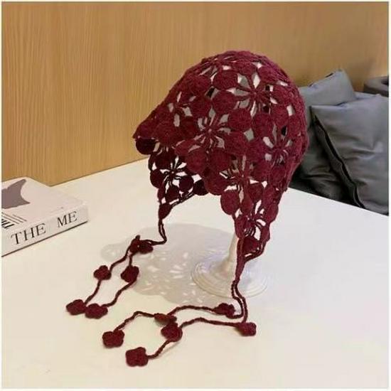 Женская ретро вязаная вручную японская шапка-бини с отворотом