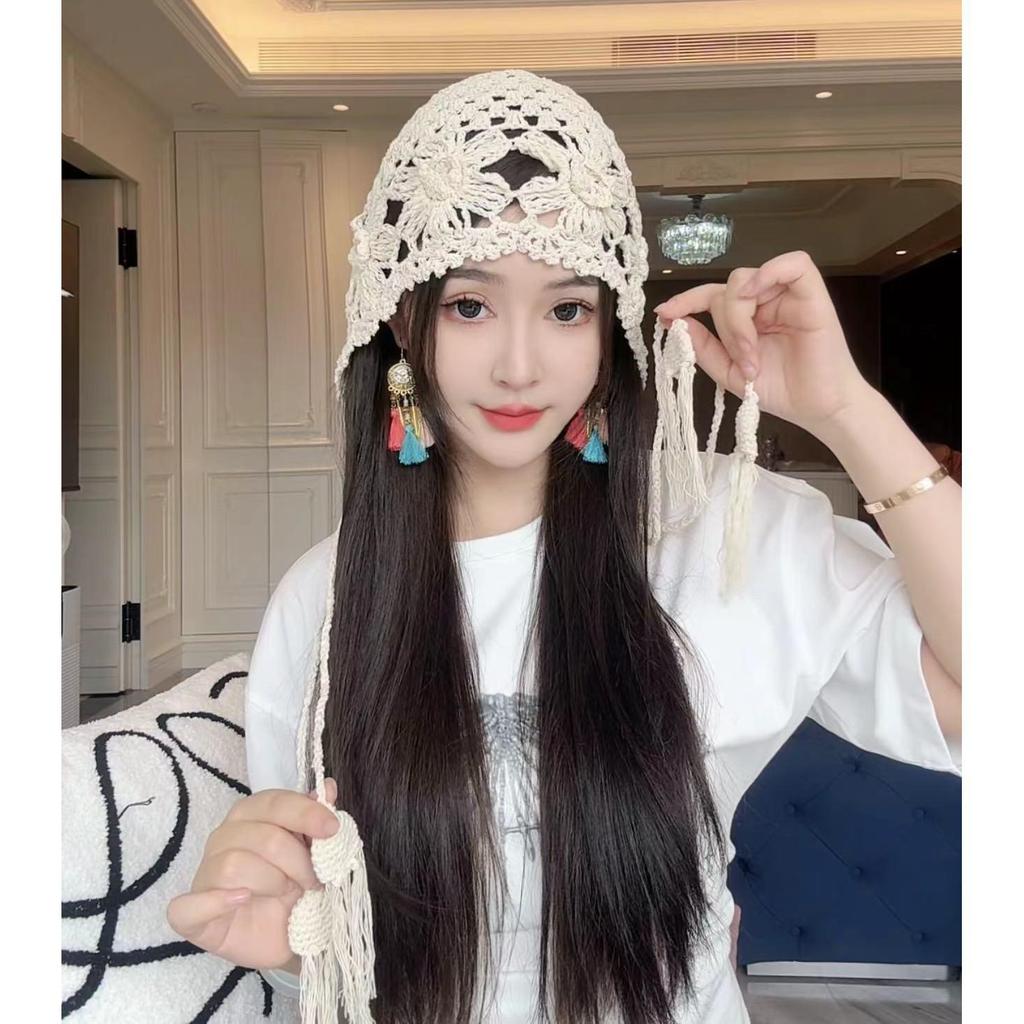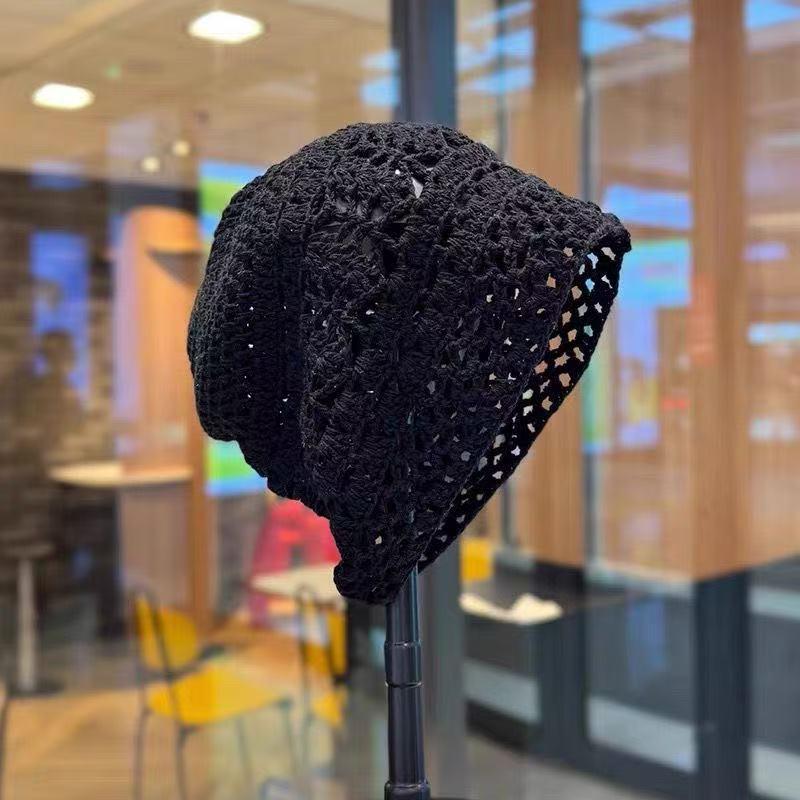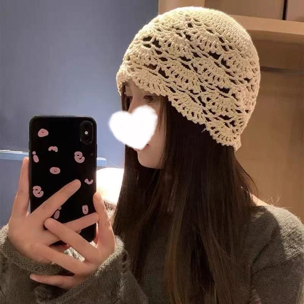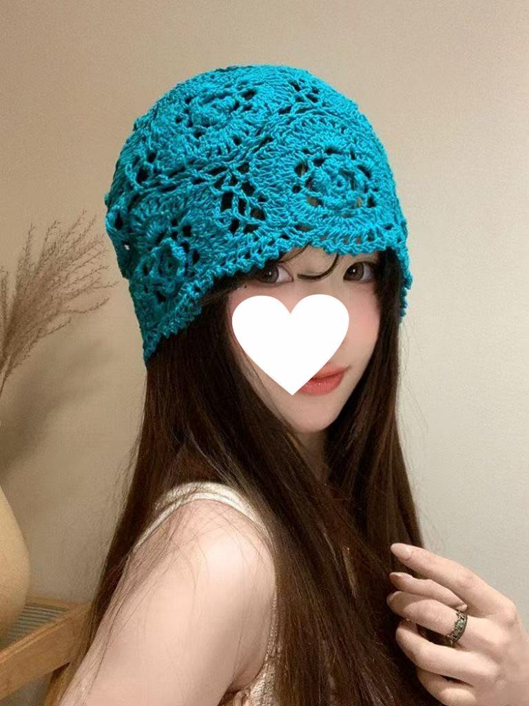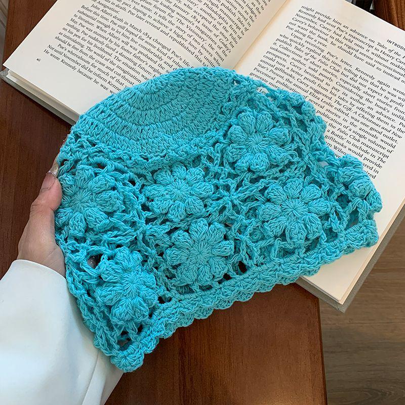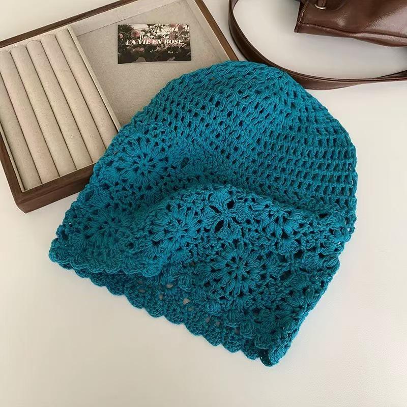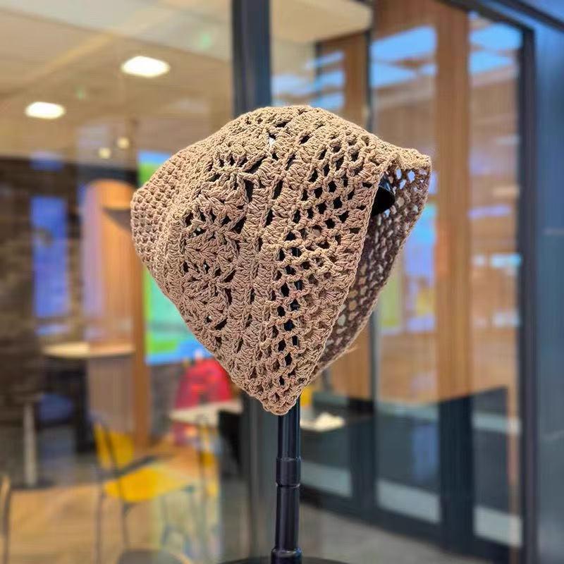 Женская ретро вязаная вручную японская шапка-бини с отворотом