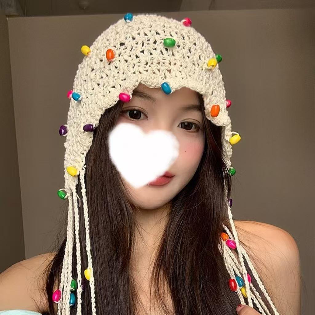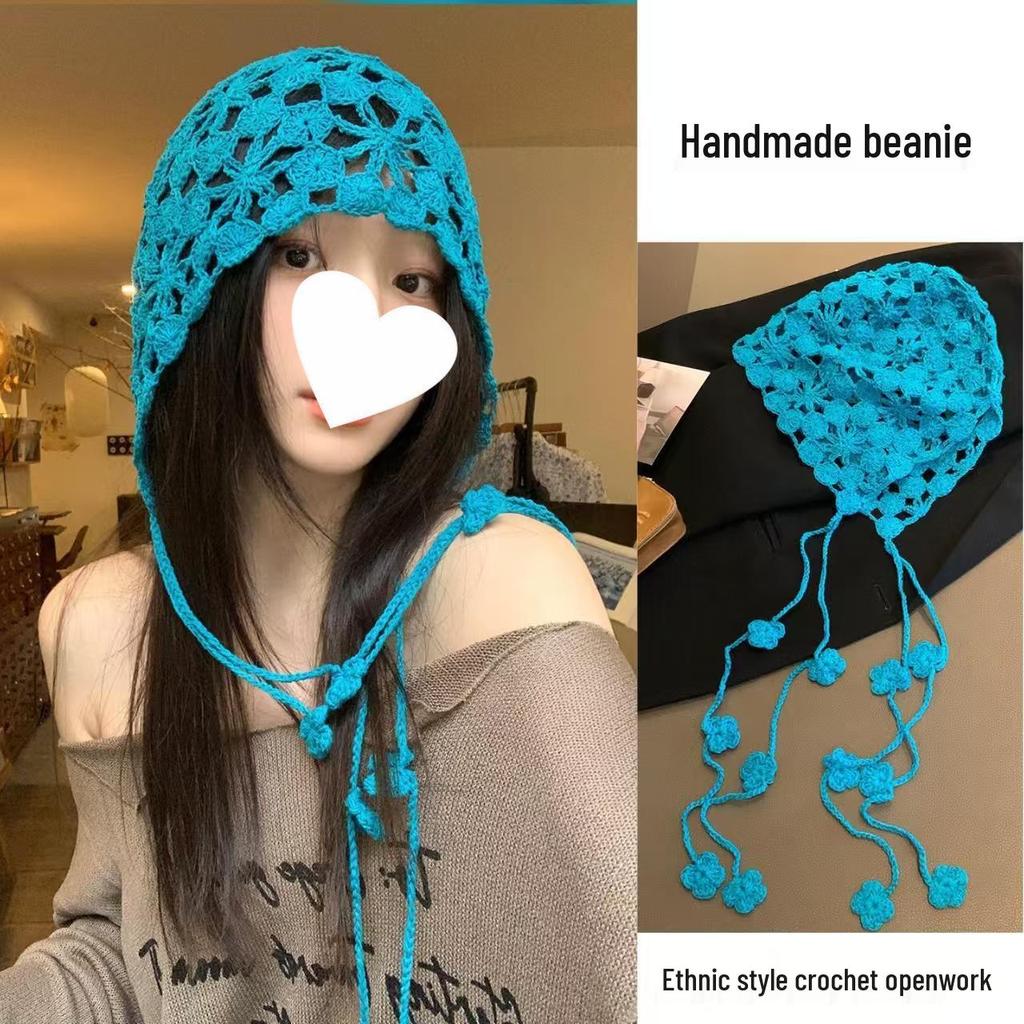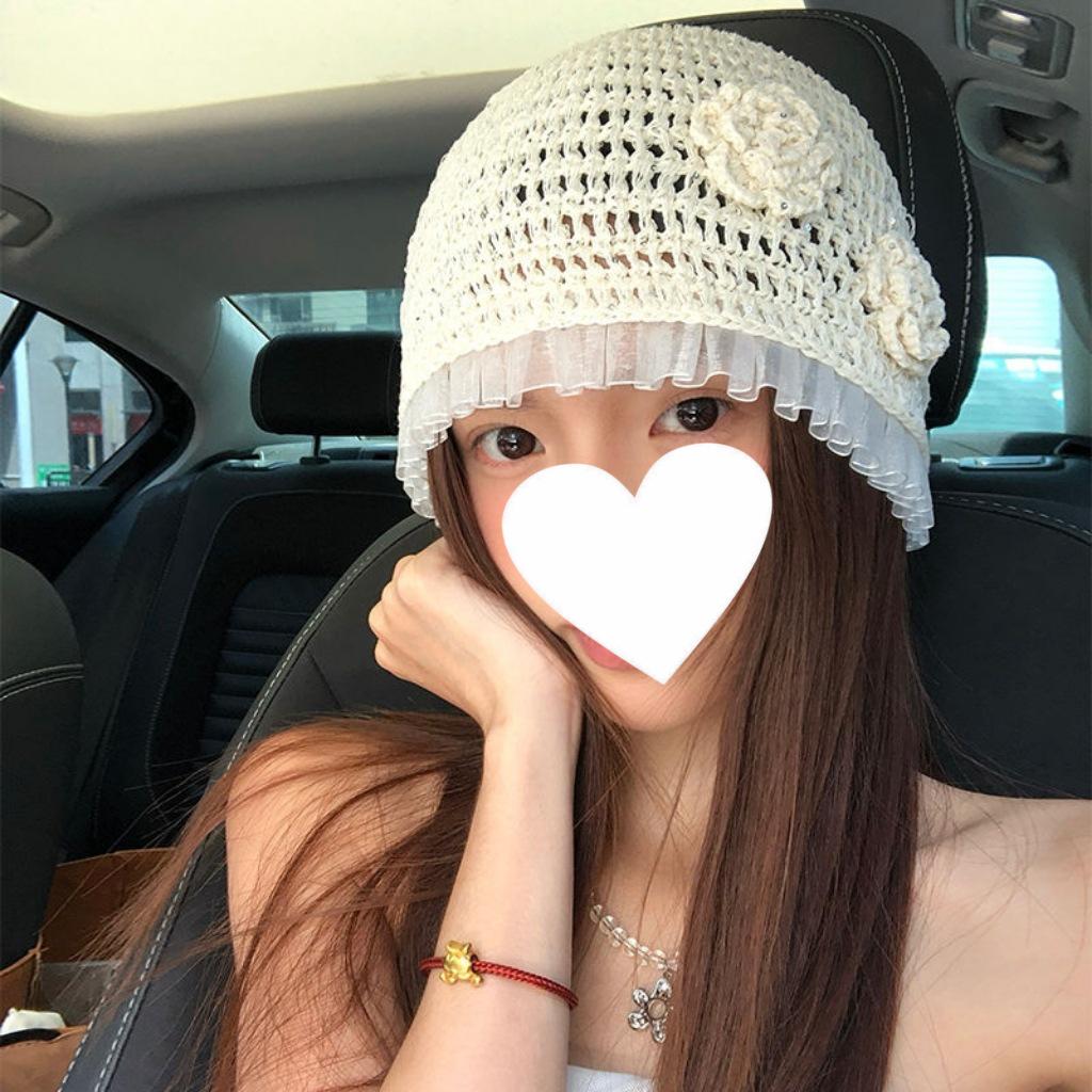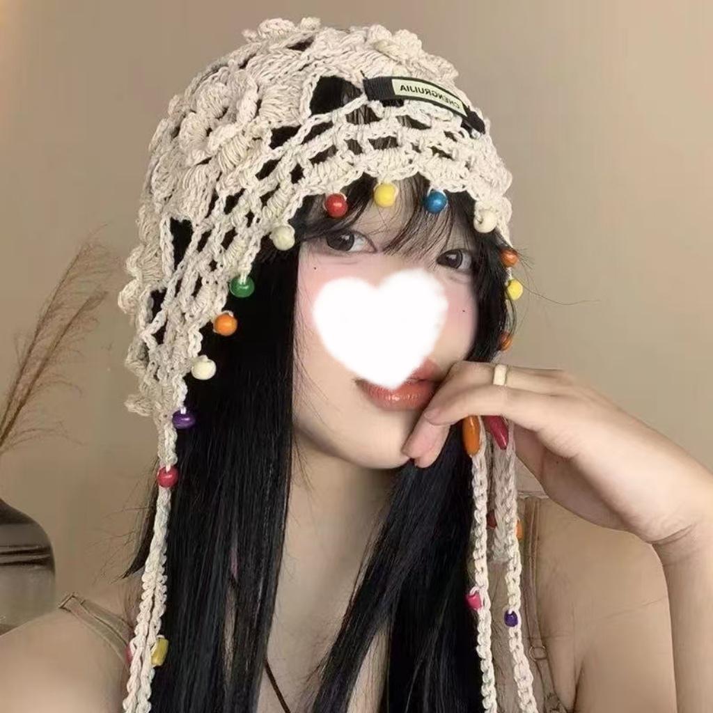 Женская ретро вязаная вручную японская шапка-бини с отворотом