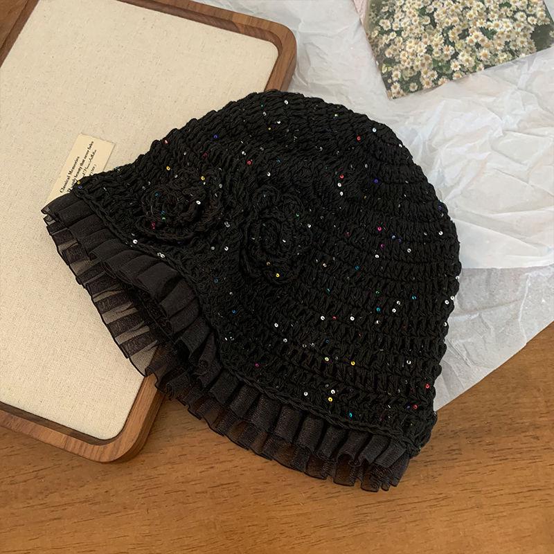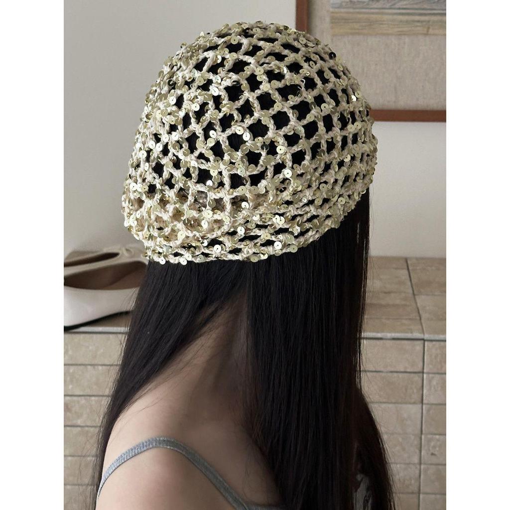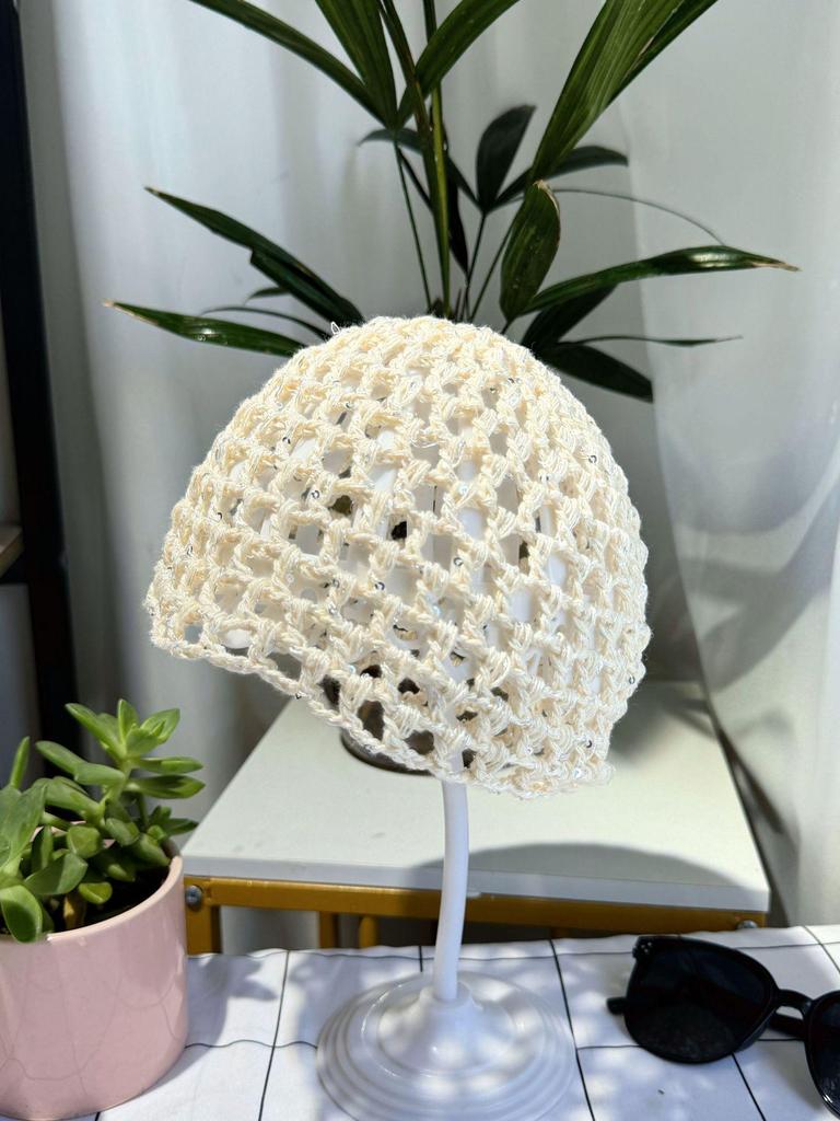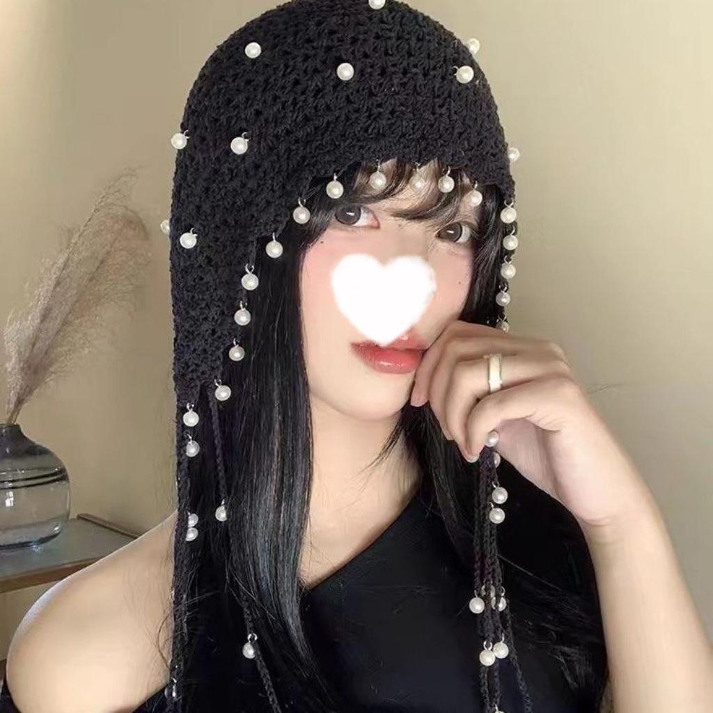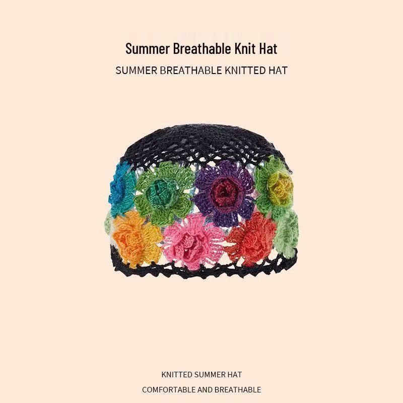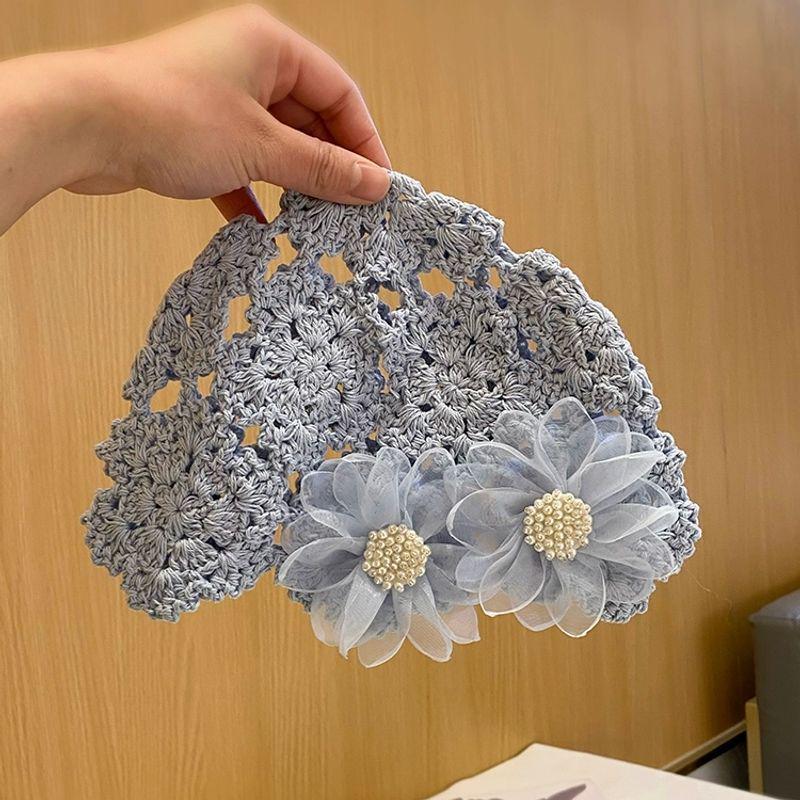 Женская ретро вязаная вручную японская шапка-бини с отворотом