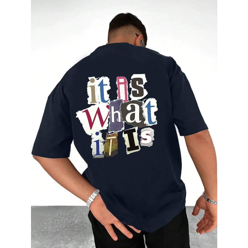 It Is What It Is Letter Graphic Мужская футболка Летняя хлопковая модная свободная одежда Повседневные топы в стиле хип-хоп Свободная мягкая футболка