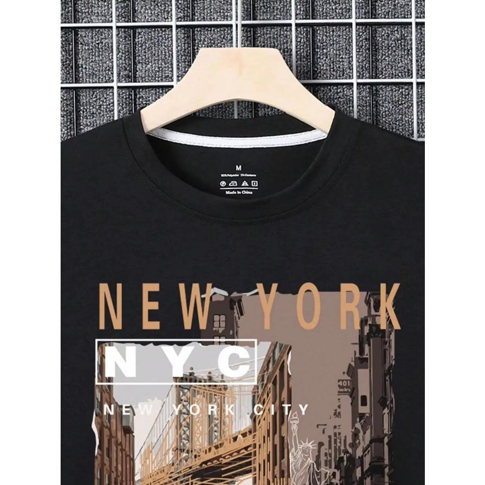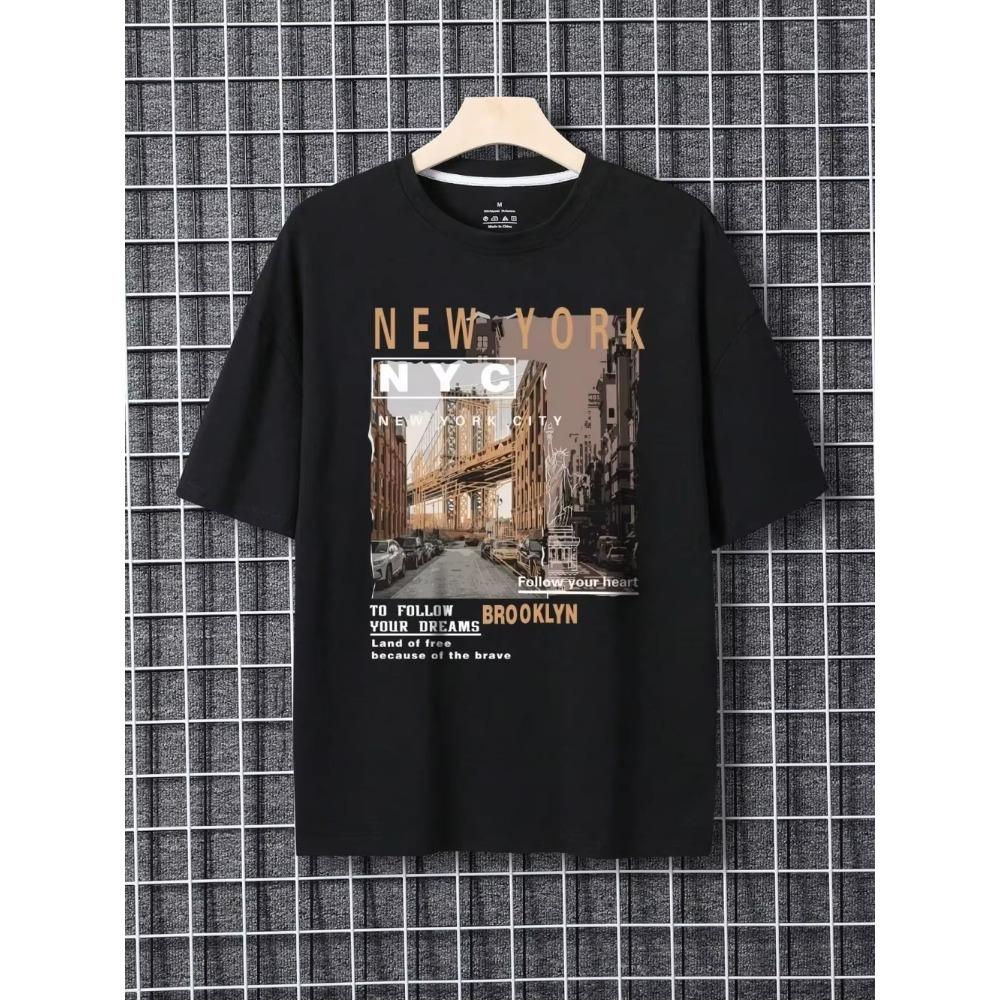 Вид на улицу Бруклина, Нью-Йорк Мужская одежда большого размера Высококачественная уличная мода Хлопковые топы Повседневная свободная футболка