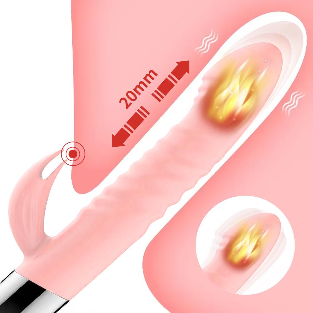 Кролик с подогревом Телескопический вибратор для женщин Стимулятор точки G, влагалища и клитора Дилдо Женский мастурбатор Секс-игрушка для взрослых 18+
