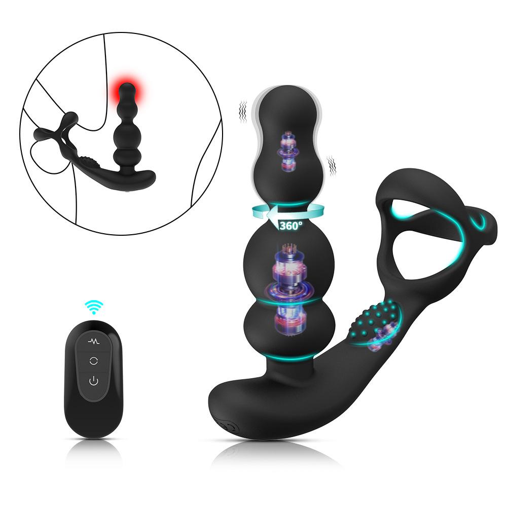 Анальный вибратор с вращением на 360 градусов, анальные бусины, мужской массажер простаты с кольцом для члена, беспроводное управление, вибрирующая анальная пробка, секс-игрушки для мужчин