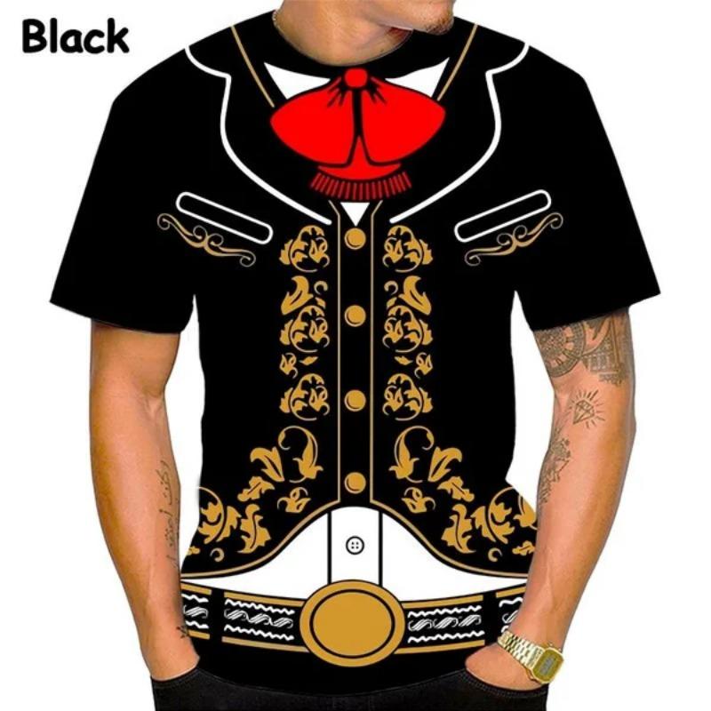 Мужская модная черная футболка с 3D-принтом в стиле мексиканской мариачи, забавная уличная футболка с коротким рукавом