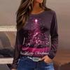 Женская модная повседневная футболка с разрезом по низу, круглым вырезом, длинными рукавами, свободного кроя, с рождественским принтом, женский топ