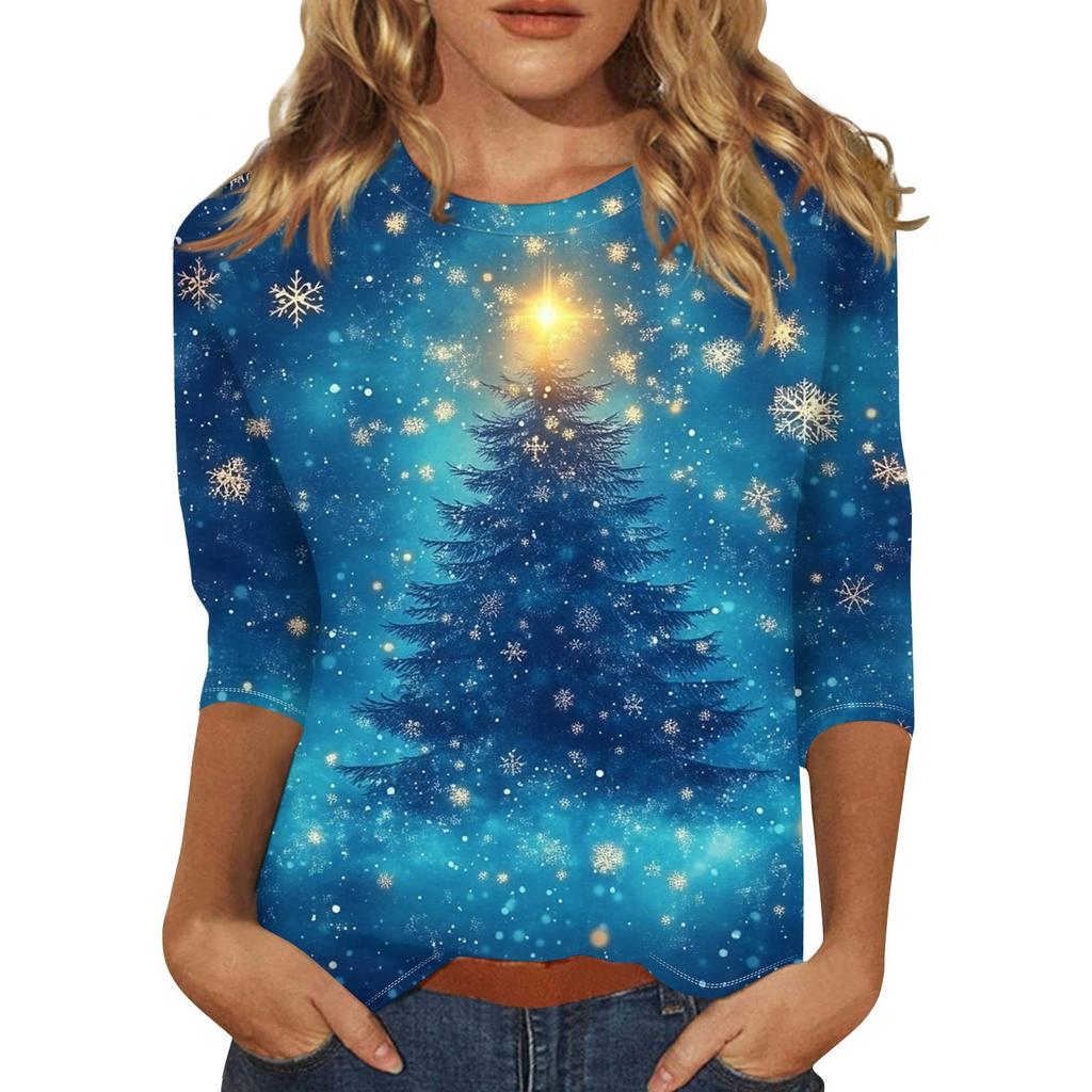 Женская повседневная футболка с круглым вырезом и рождественским принтом снежинок, рукав три четверти, топ, пуловер