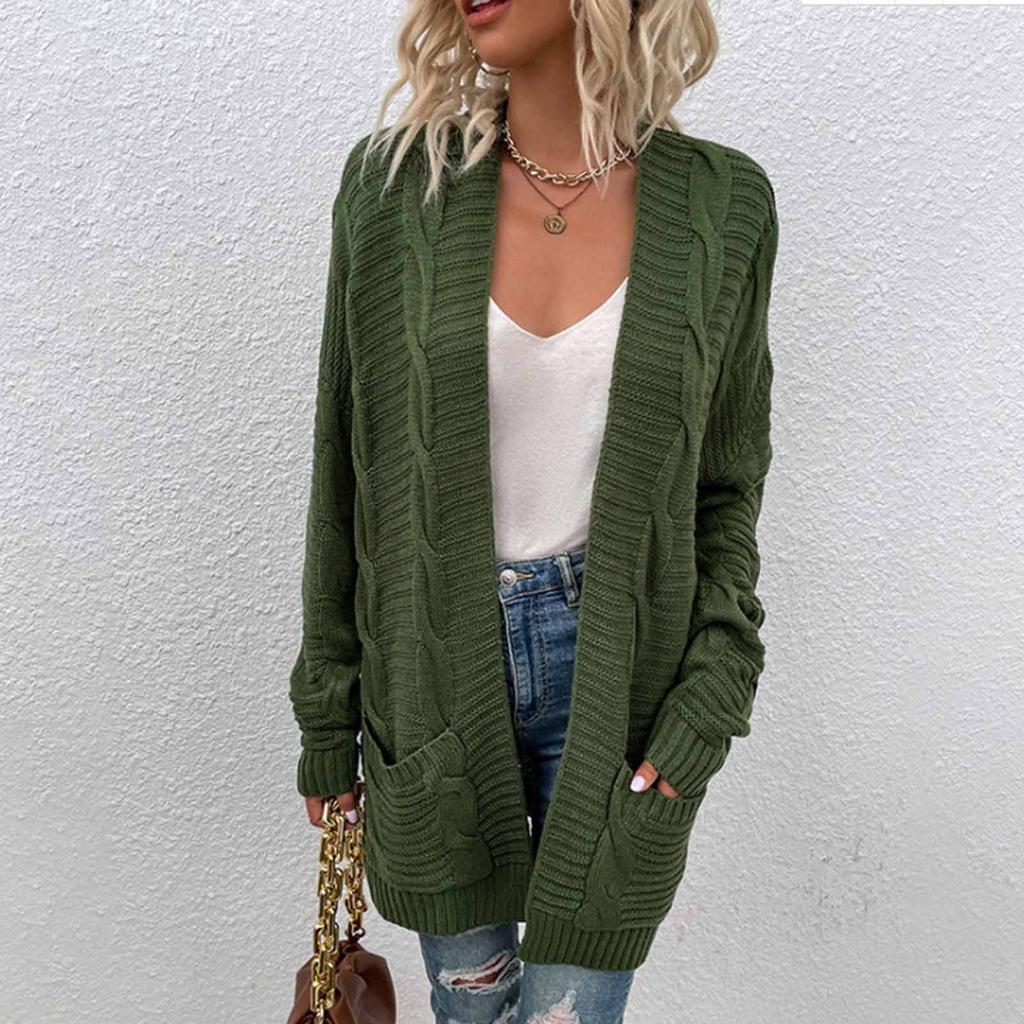 Женский однотонный свободный трикотажный кардиган средней длины с длинным рукавом для женщин