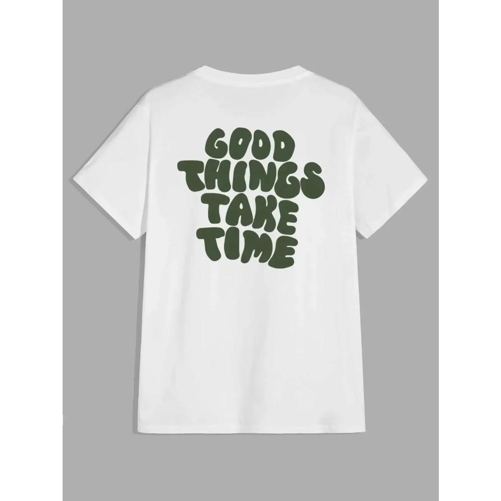 Хорошие вещи берут время Смешная графическая надпись Мужская футболка Модная одежда Хлопковые топы Модная летняя футболка Футболка большого размера