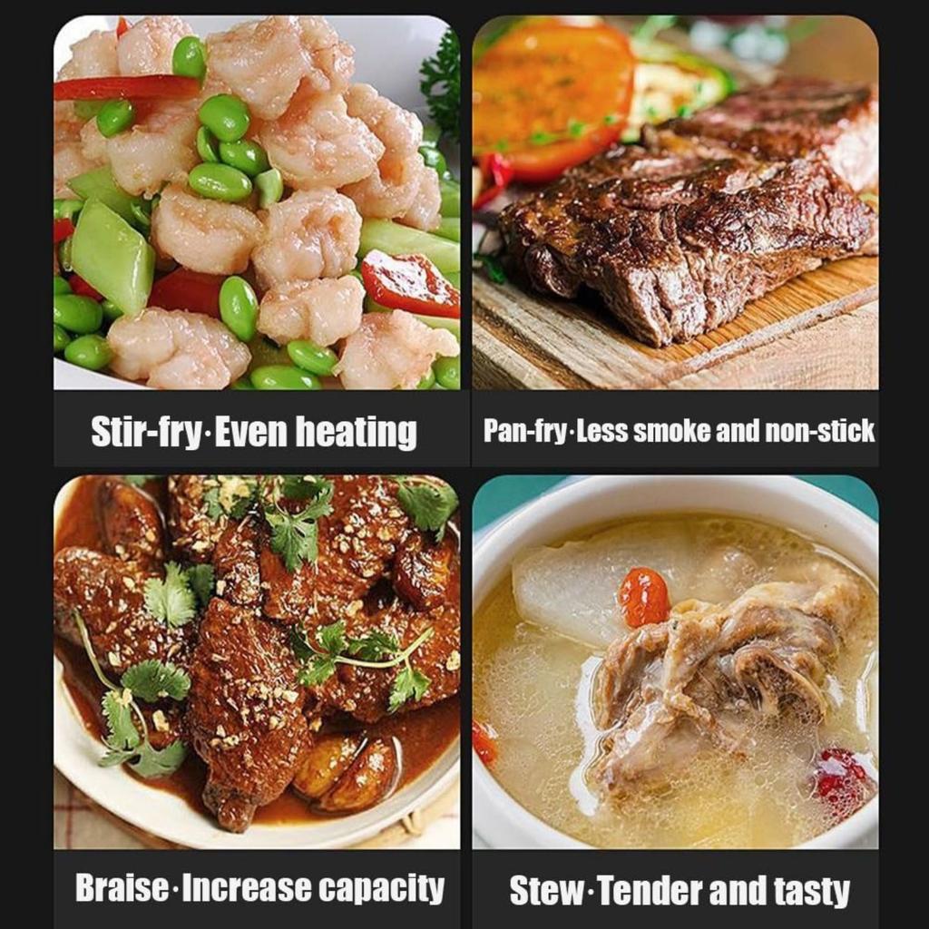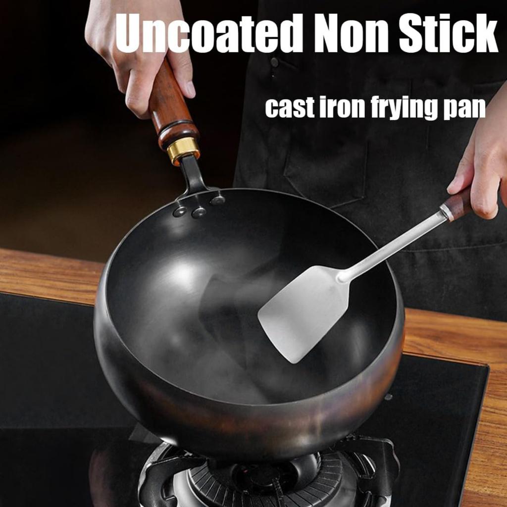 Непокрытый чугунный горшок, 9,45-дюймовый, кованный вручную, с антипригарным покрытием, без покрытия, для газовой сковороды Wok с круглым дном и крышкой