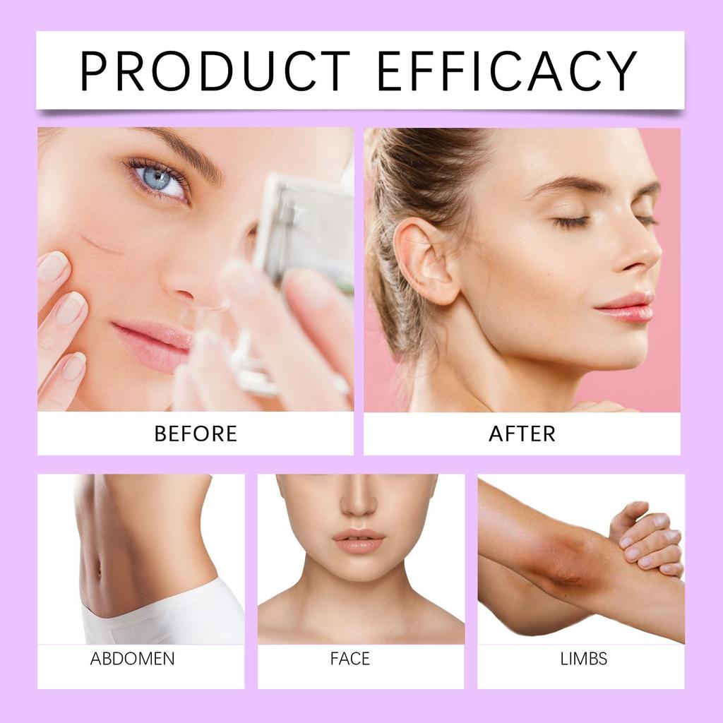 Быстрое удаление старых и новых шрамов; смягчить и разгладить кожу, чтобы ШРАМ не появлялся; стимулируют выработку коллагена и уменьшают пигментацию.