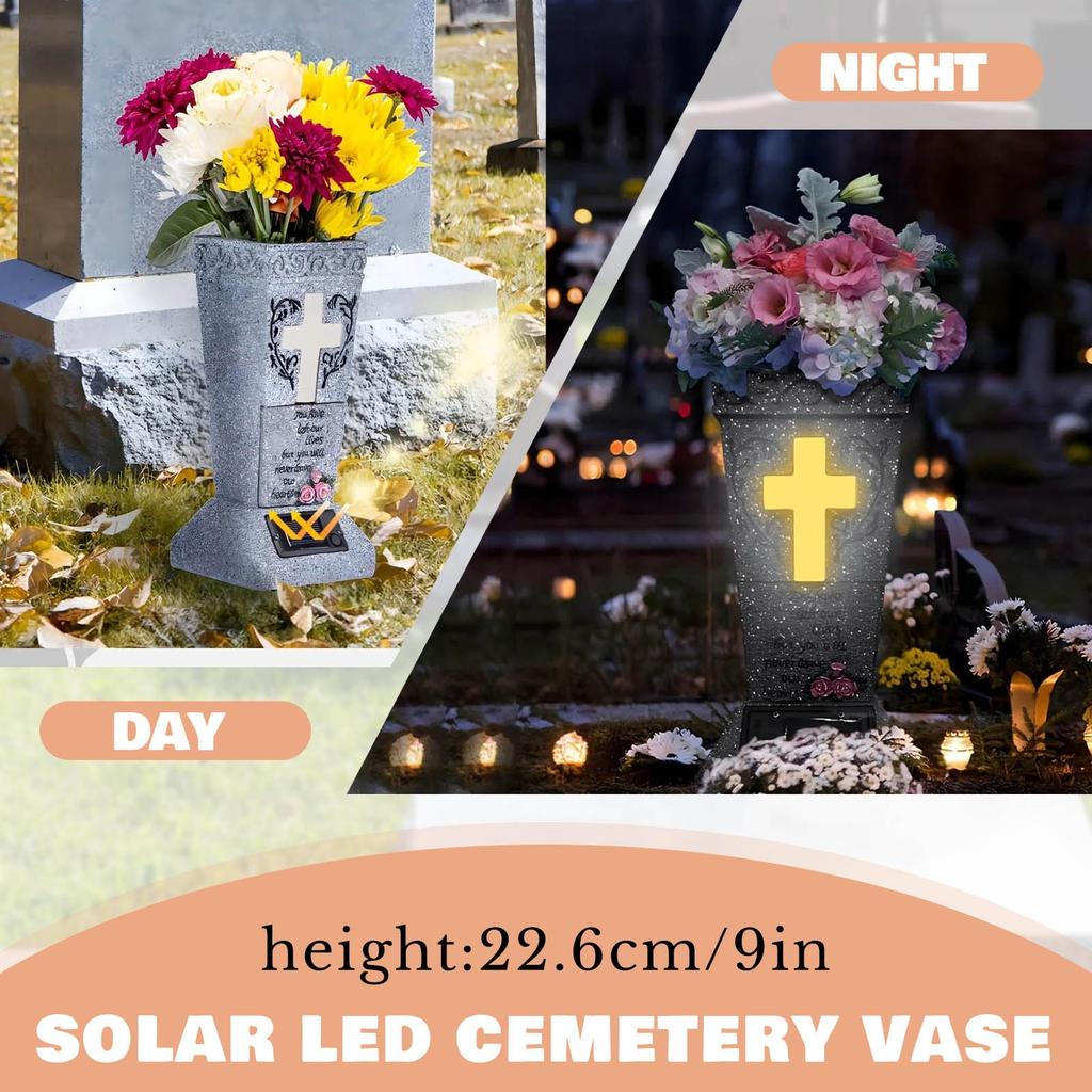 Солнечная кладбищенская ваза со светодиодами для живых/искусственных цветов Надгробные вазы с шипами Декор надгробия Подарки на память о потере близкого человека