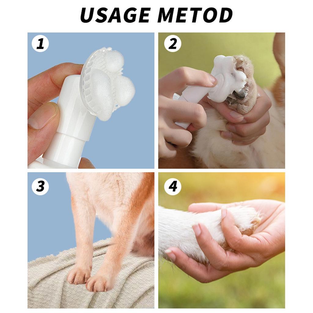 ПРОСТОТА ИСПОЛЬЗОВАНИЯ - просто снимите, нажмите на насадку, чтобы распылить пену на мягкие силиконовые щетинки, и аккуратно помассируйте шерсть собаки круговыми движениями, тщательно очищая щели между подушечками.. Просто вытрите насухо, ополаскивание не требуется. Используйте после каждой прогулки или по мере необходимости.. Чистящее средство для щенков и собак удобно спроектировано, чтобы вы могли чистить свою собаку в любое время и в любом месте.. Чтобы очистить силиконовые щетинки, снимите колпачок щетки и промойте ее под теплой водой.