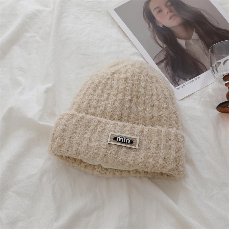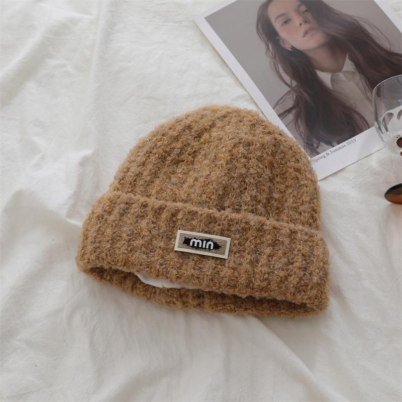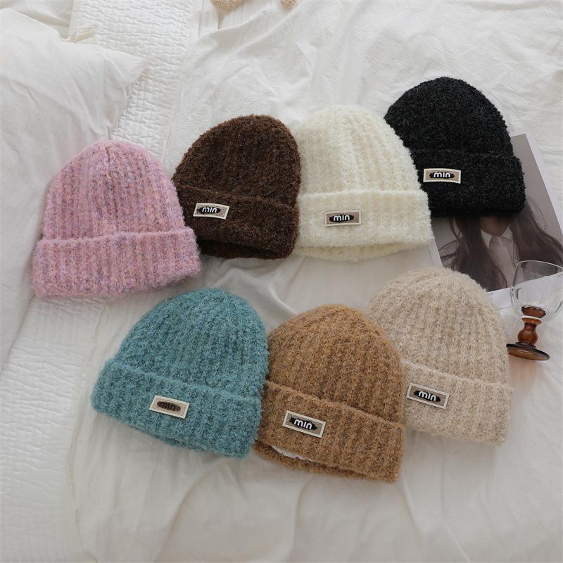 Японская однотонная шапка из шерсти с цветными буквами, простая, подчеркивающая лицо, маленькая, свободная, универсальная вязаная шапка