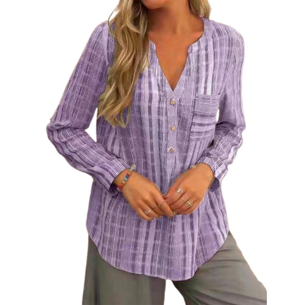 Женская популярная рубашка в полоску с V-образным вырезом и неровным подолом, приятная к коже, летняя блузка с карманом, блузка с длинным рукавом для повседневной носки