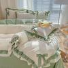 Кружевное постельное белье из четырех предметов, девичье, нежное к коже, удобное, стираное, простыни, пододеяльник, наволочка