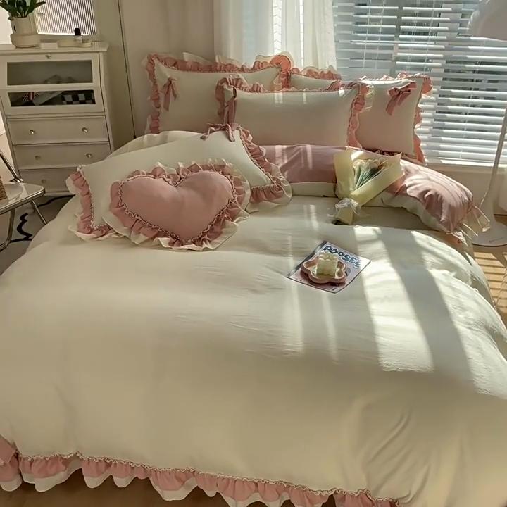 Кружевное постельное белье из четырех предметов, девичье, нежное к коже, удобное, стираное, простыни, пододеяльник, наволочка — купить товар онлайн с бесплатной доставкой по всему миру!