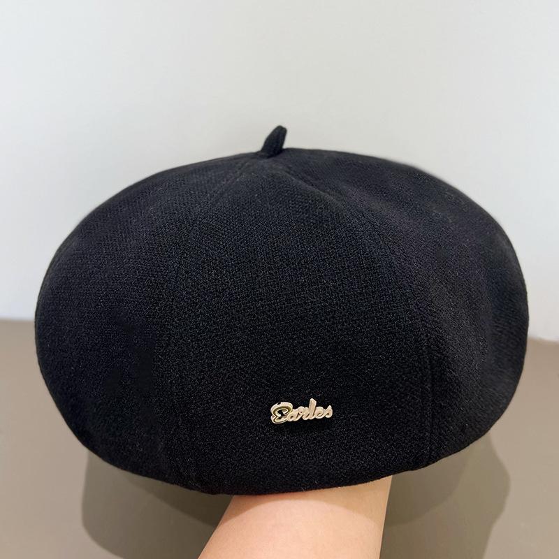 Черный берет Универсальный, подчеркивающий лицо, Маленький берет Художник Женский Осенний Корейская шляпа Большой обхват головы Ин Тренд Шляпа