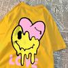Футболки с надписью «Счастливое лицо и больное сердце», дышащая футболка с круглым вырезом для пары, свободная одежда, летние футболки больших размеров, хлопковая футболка
