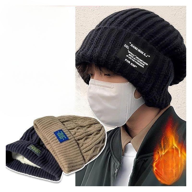Шапка с отворотом Мужская Зимняя Шапка для Большой Головы Теплая Утолщенная Бархатная Ветрозащитная Вязаная Шапка Большого Обхвата Головы Подчеркивающая Лицо Маленькая Шерстяная Шапка