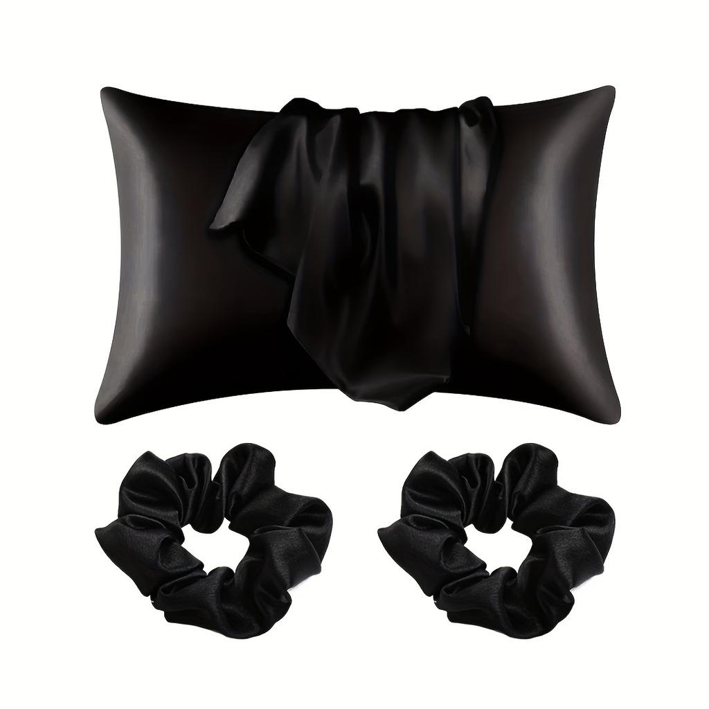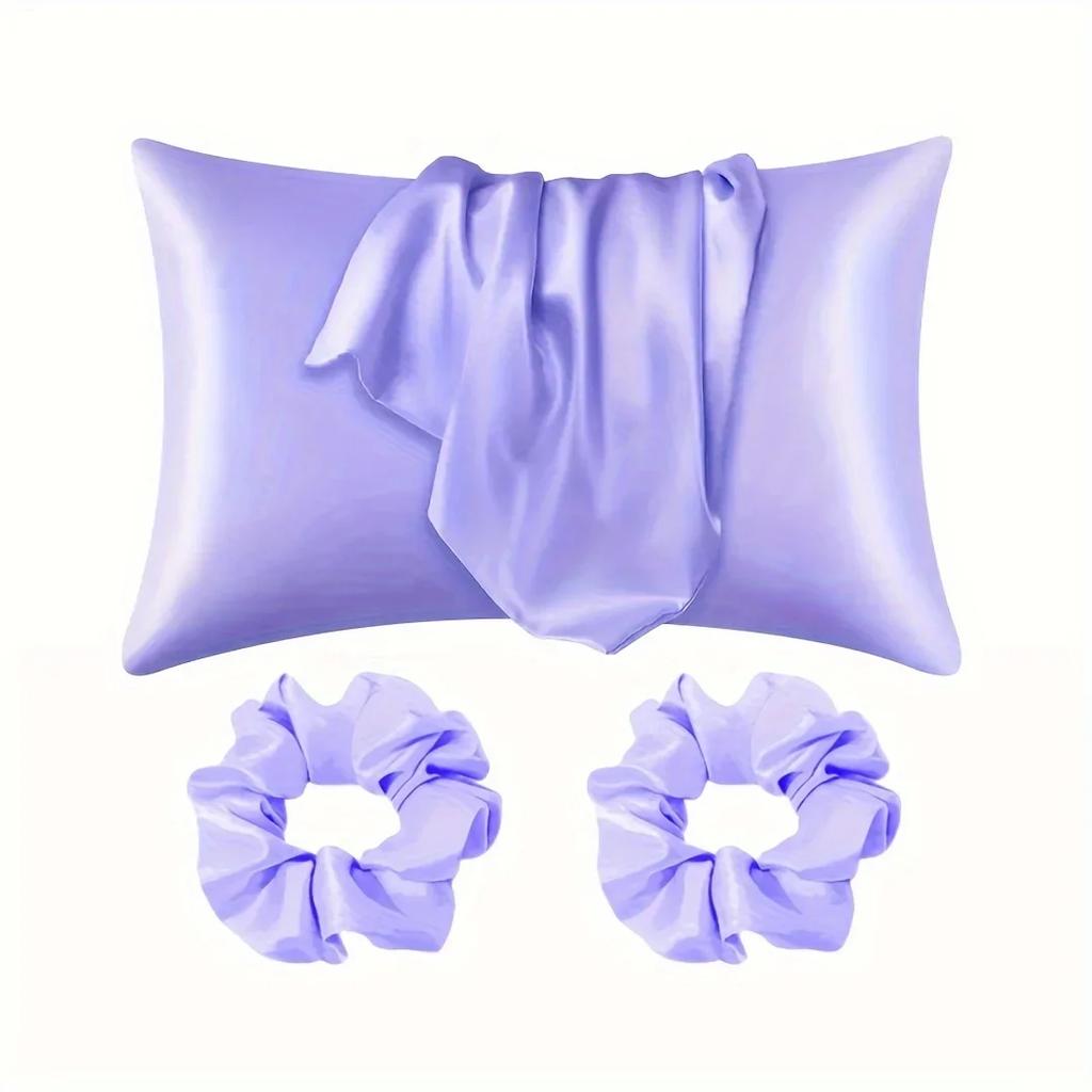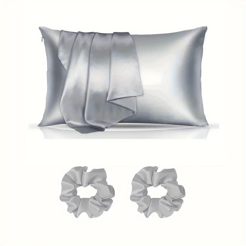 Набор для ухода за волосами из 4 предметов: 2 шелковистые наволочки и 2 полиэстеровые резинки для волос