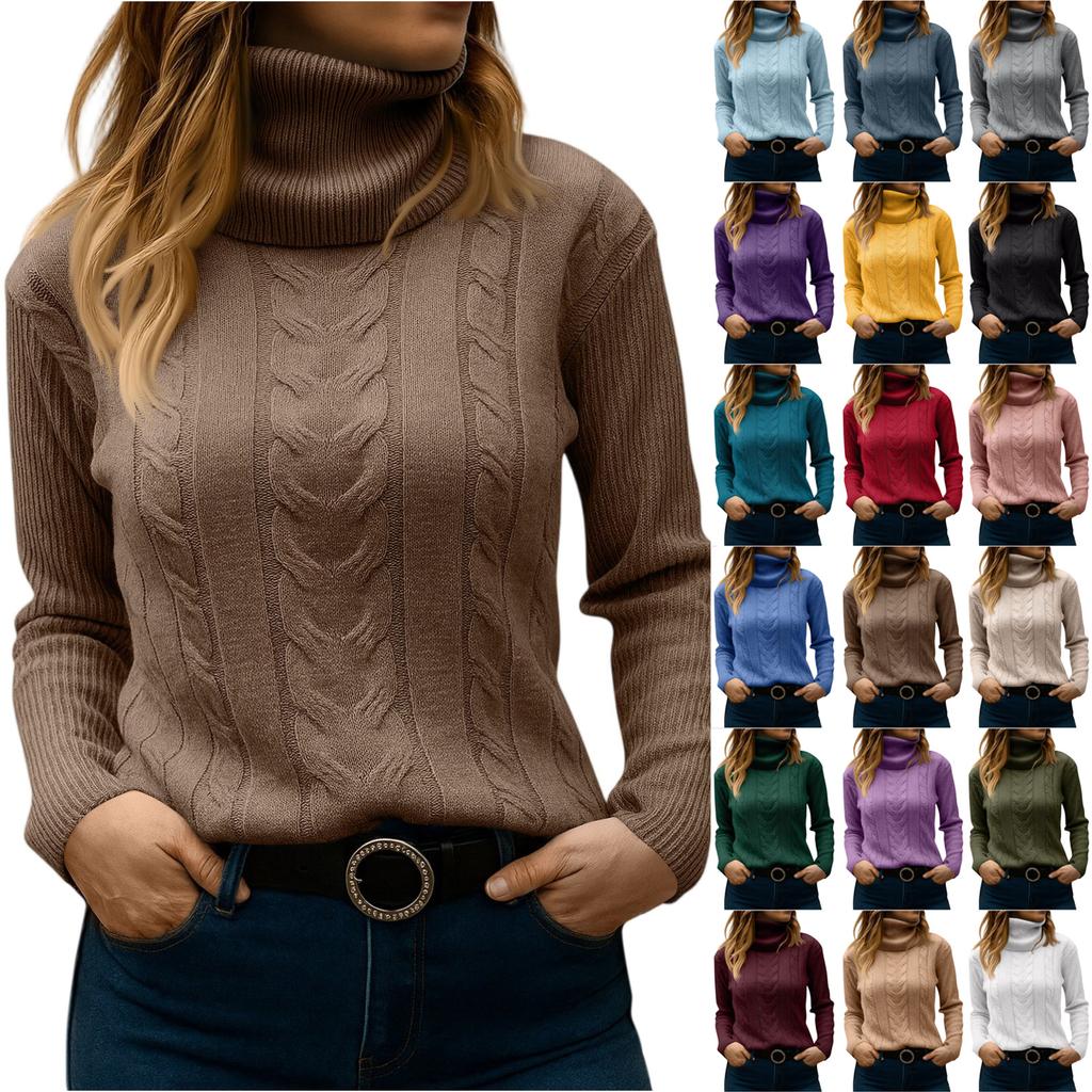 Женский модный однотонный свитер с высоким воротом и длинными рукавами, пуловер, топ