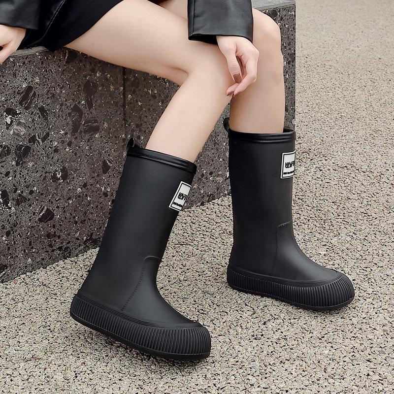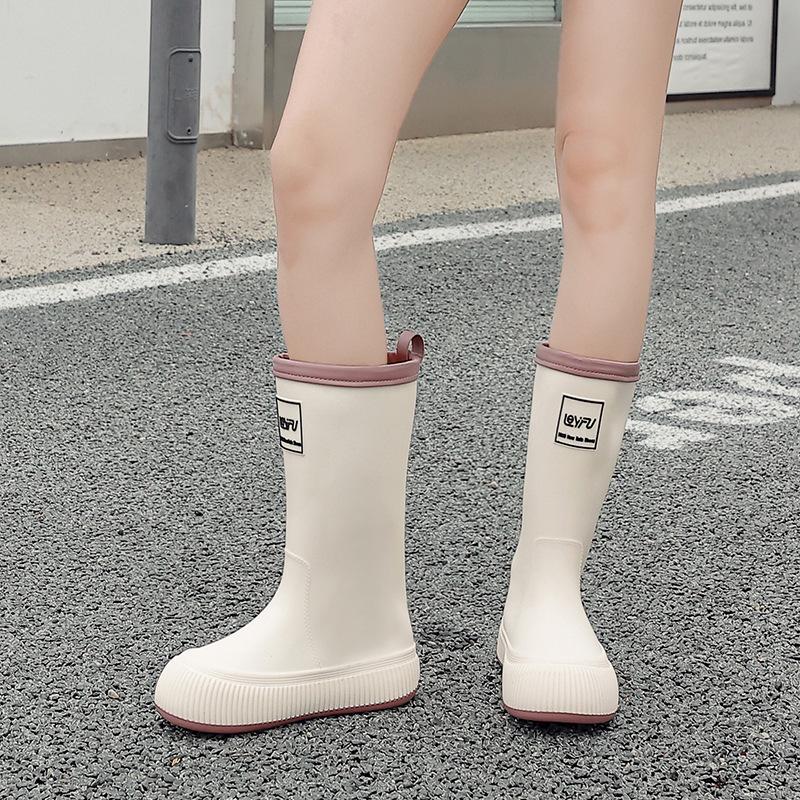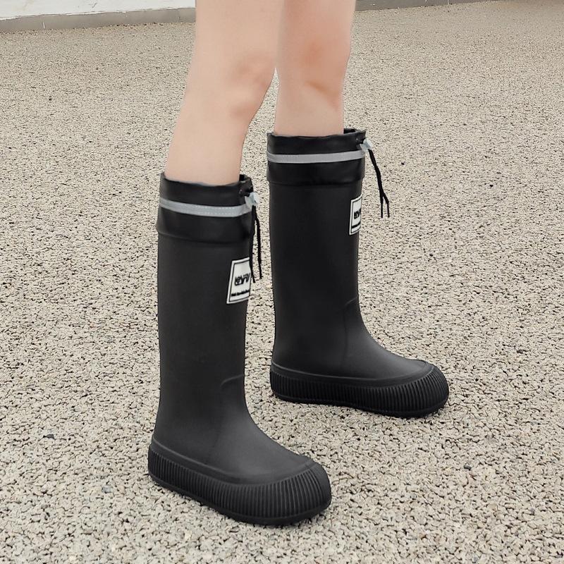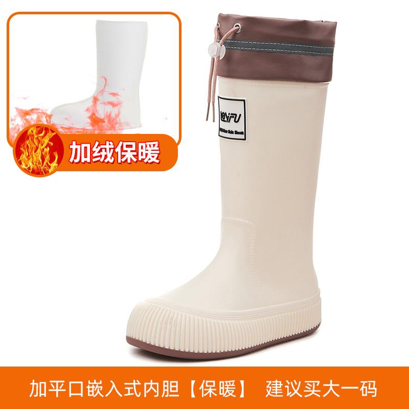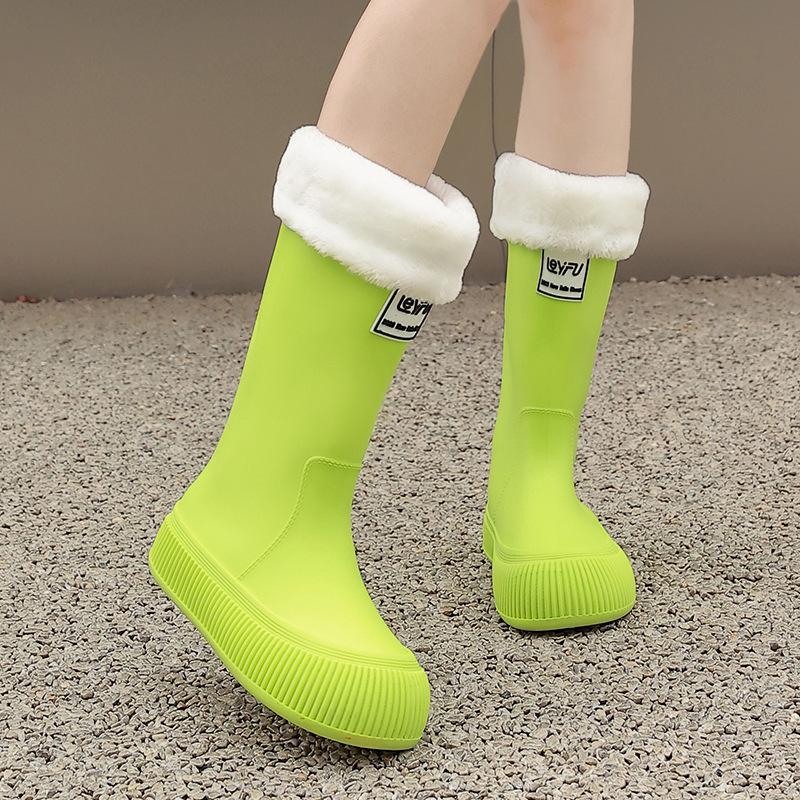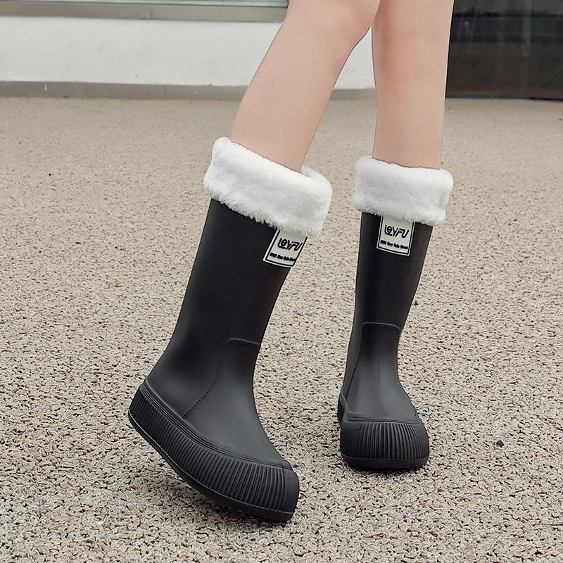 Новые женские непромокаемые ботинки с высоким голенищем, водонепроницаемые и нескользящие водные ботинки, бархатные длинные резиновые сапоги, износостойкие модные взрослые резиновые ботинки