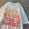 Давайте посмотрим на закат с принтом, одежда для мужчин и женщин, летняя футболка Harajuku, хлопковая футболка с рисунком, модные дышащие топы для пар