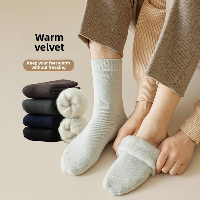 Мужские зимние бархатные и толстые теплые однотонные домашние носки из шерсти с подогревом