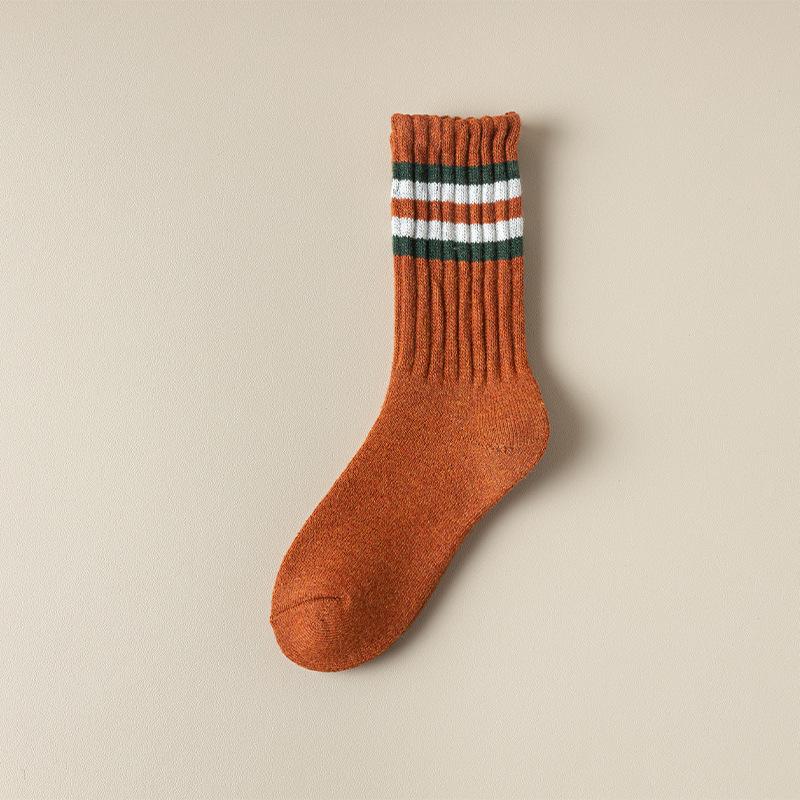 Женские осенне-зимние вельветовые утолщенные теплые носки с четырьмя полосками до колена из шерстяного ворса