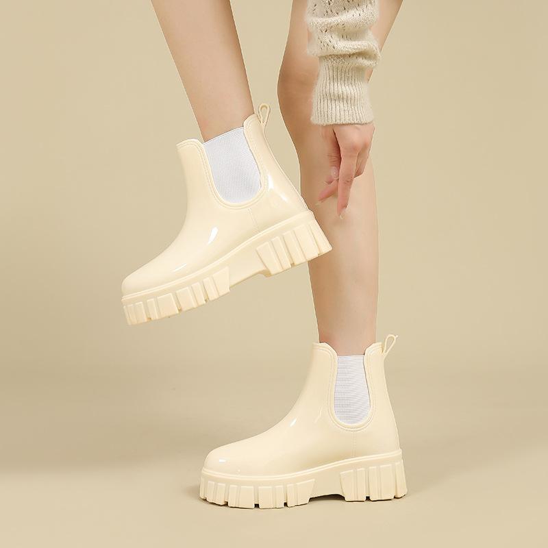 Женские резиновые сапоги средней высоты на толстой подошве, новые водонепроницаемые и нескользящие взрослые водные ботинки, легкая резиновая обувь, модные резиновые сапоги