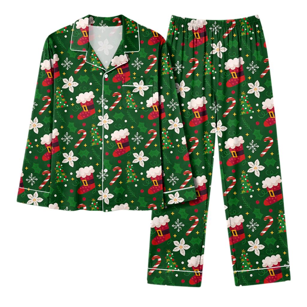 Женский повседневный модный комплект для дома с длинным рукавом и брюками с рождественским принтом
