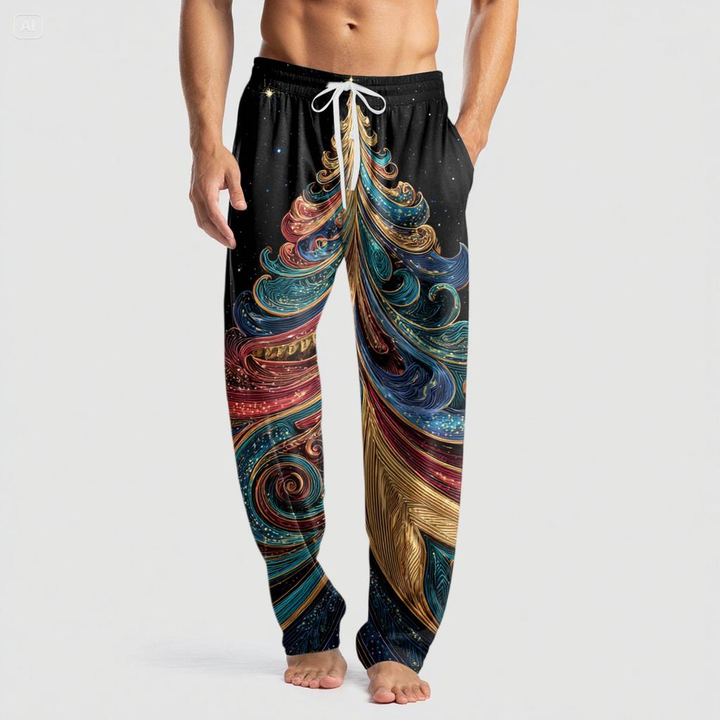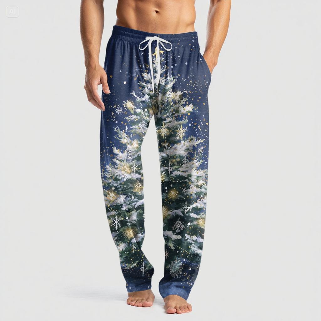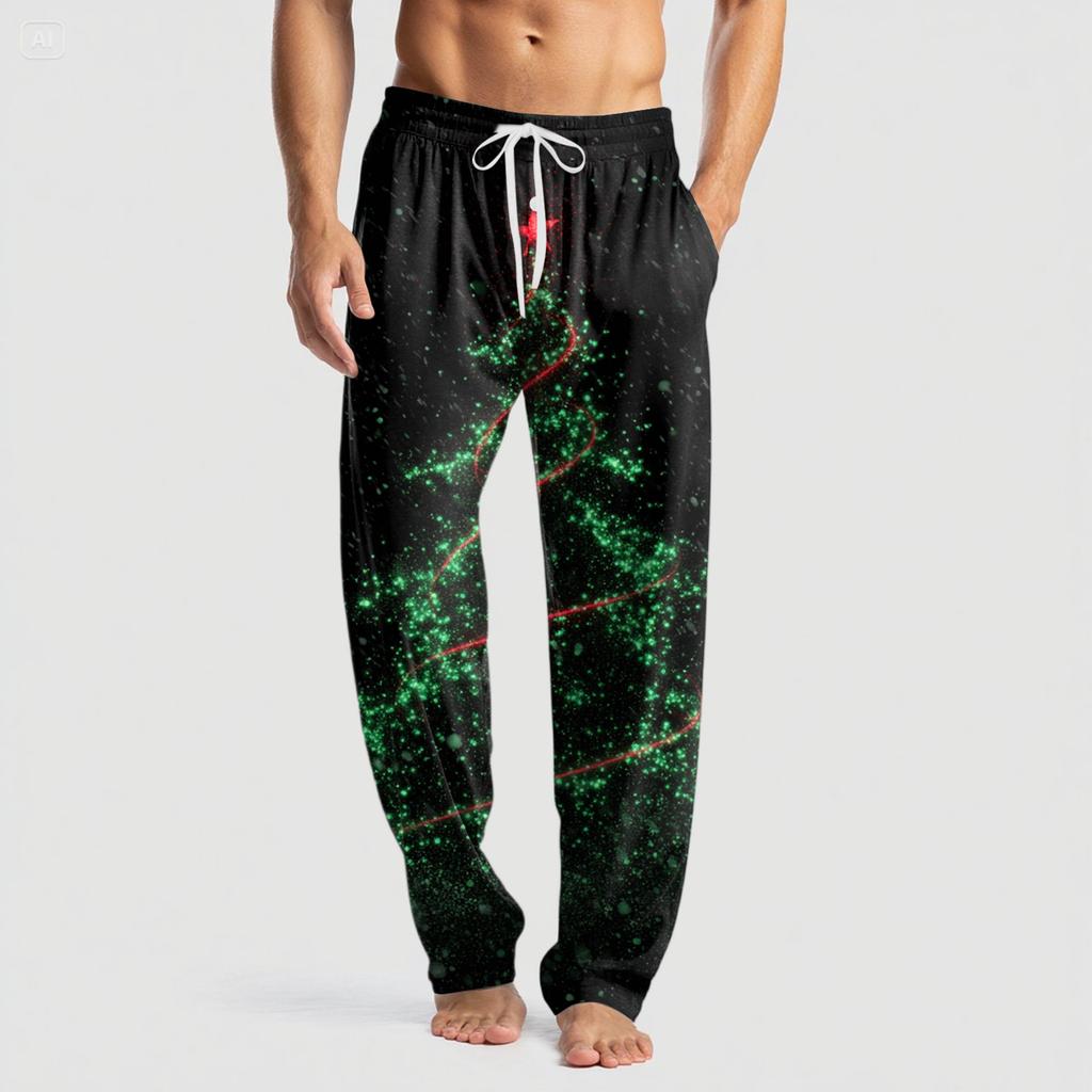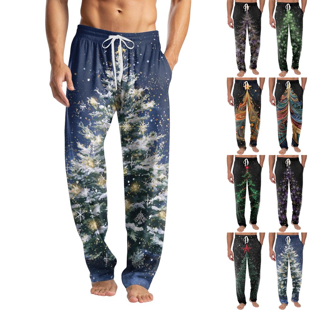 Мужские вязаные модные брюки с принтом, карманами, повседневные, пижамные
