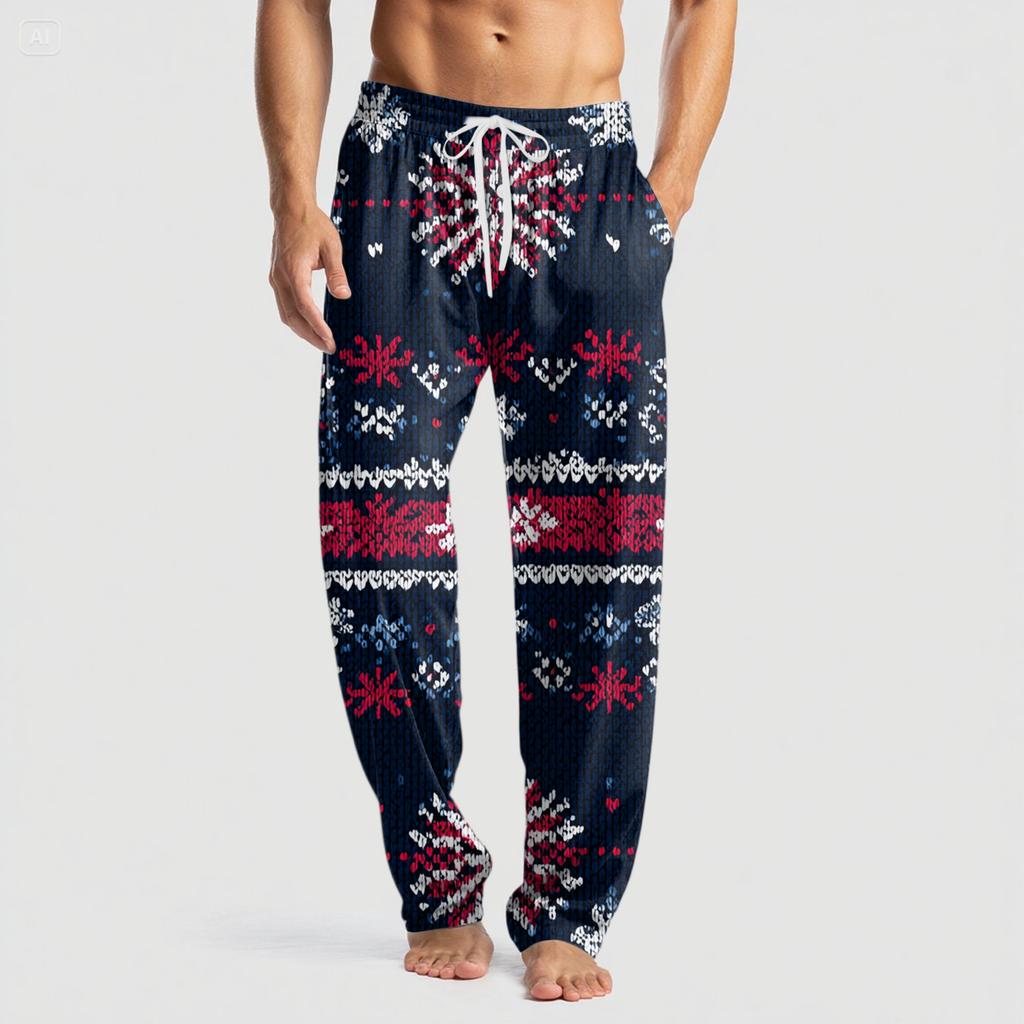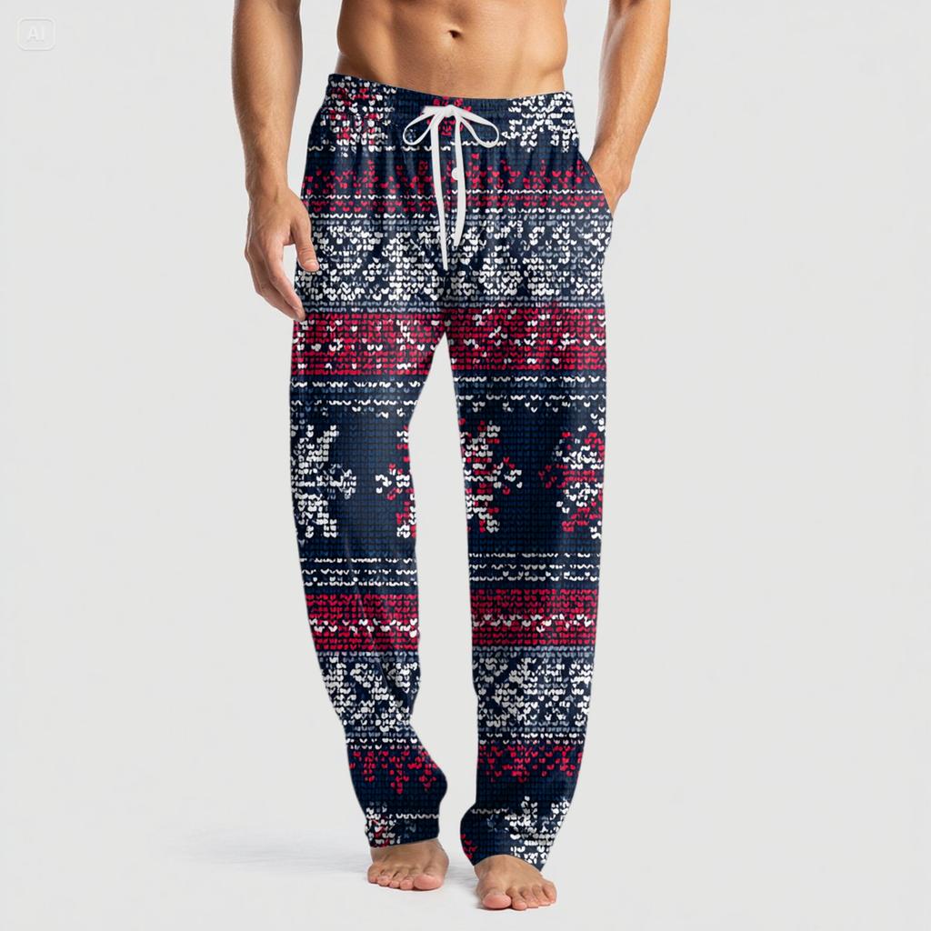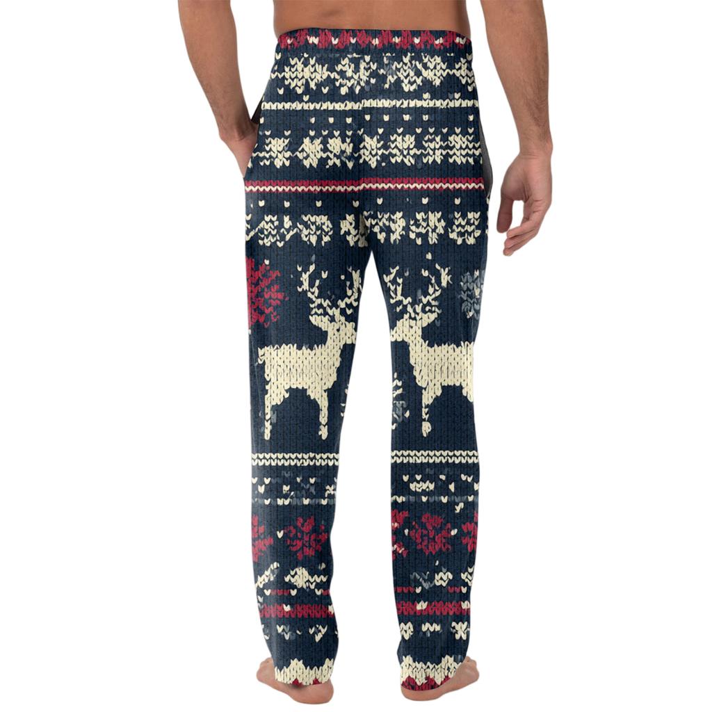 Мужские вязаные модные брюки с принтом, карманами, повседневные, пижамные