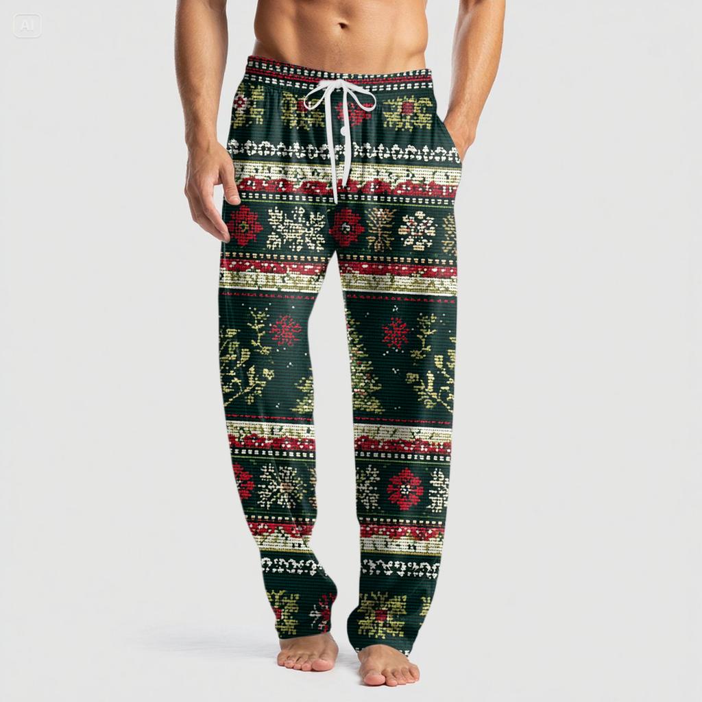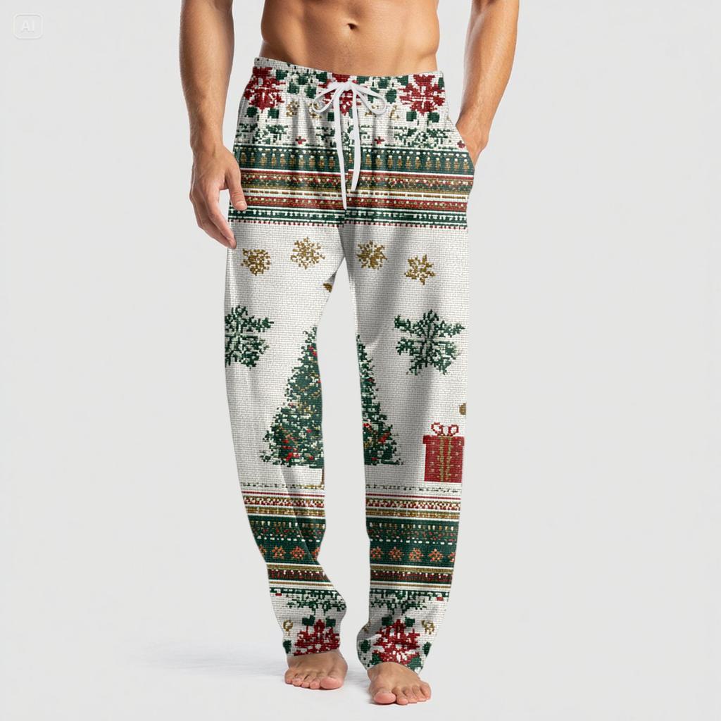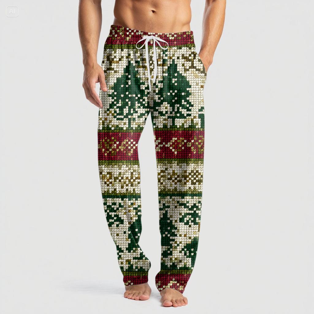 Мужские вязаные модные брюки с принтом, карманами, повседневные, пижамные