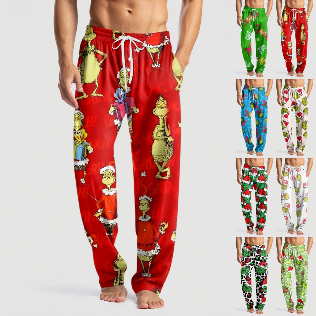 Мужские вязаные модные брюки с принтом, карманами, повседневные, пижамные