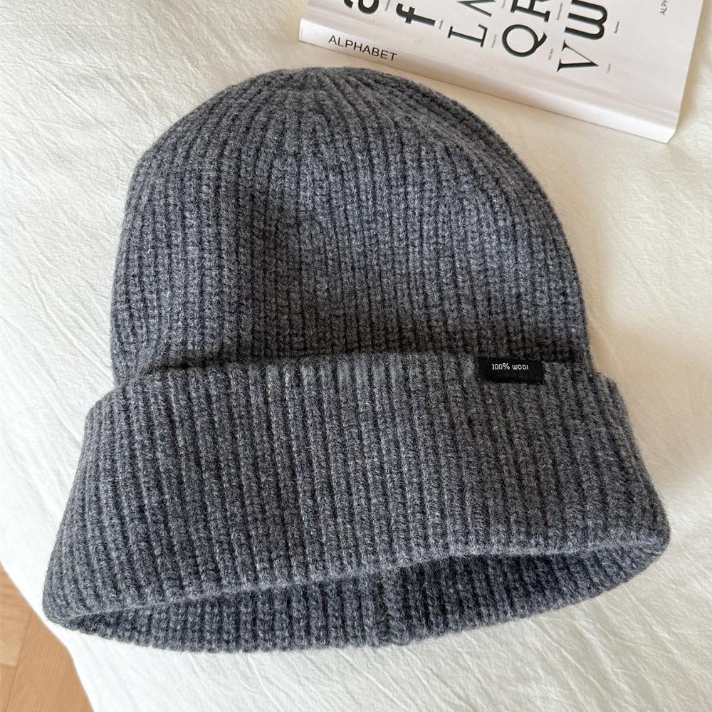 Европейские и американские шерстяные шапки Осень-Зима Однотонные Простые Мужские Теплые Плюс Бархат Утолщенные Для Занятий Спортом На Открытом Воздухе Вязаная Шапка