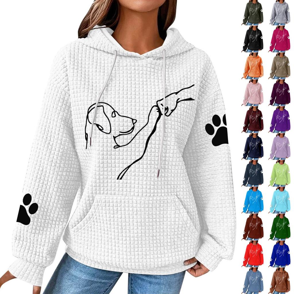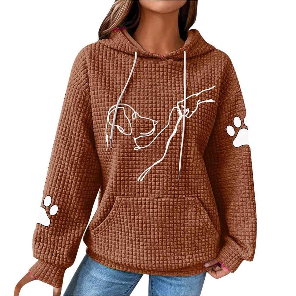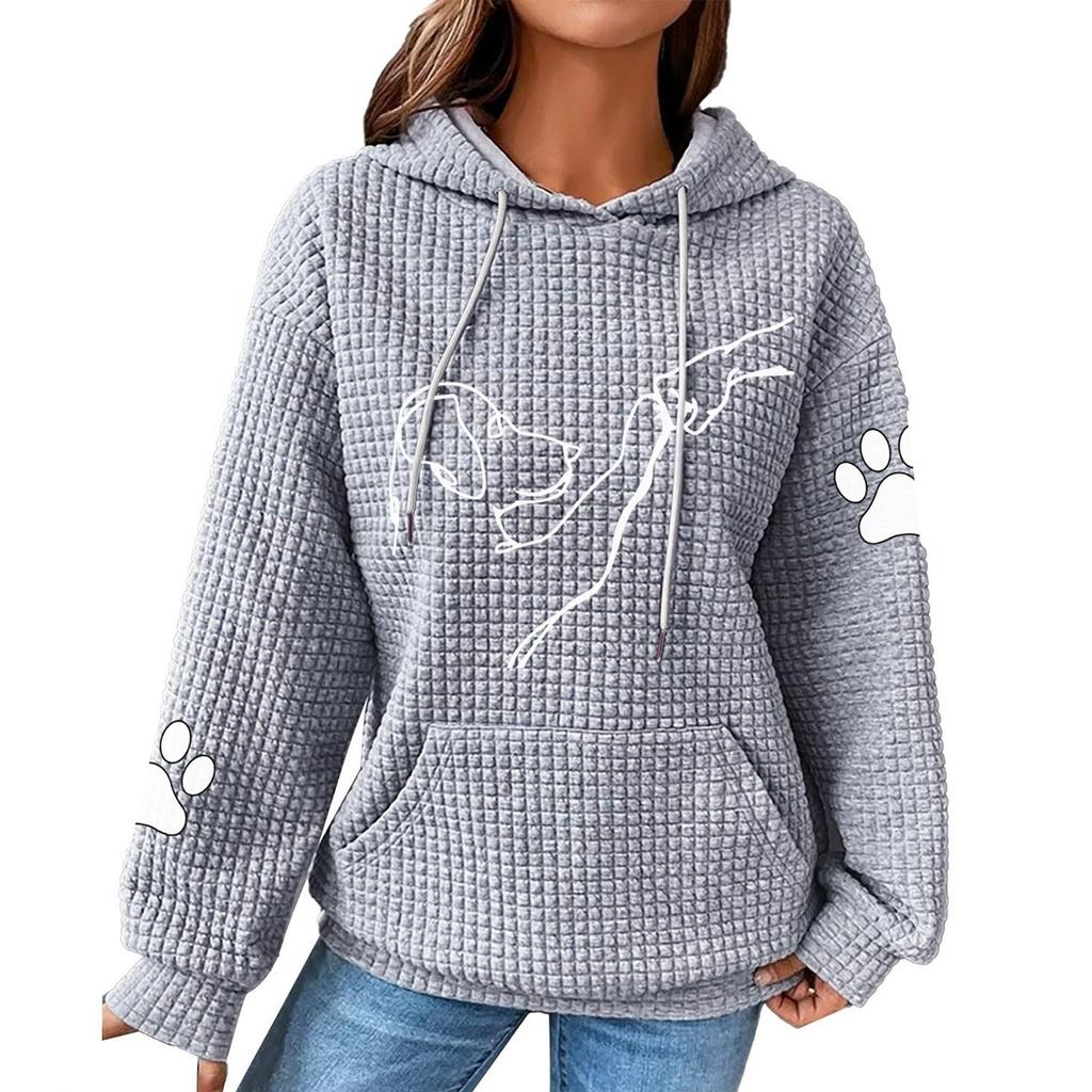 Женская мода свободный джемпер с капюшоном и принтом собаки с длинным рукавом в клетку с капюшоном