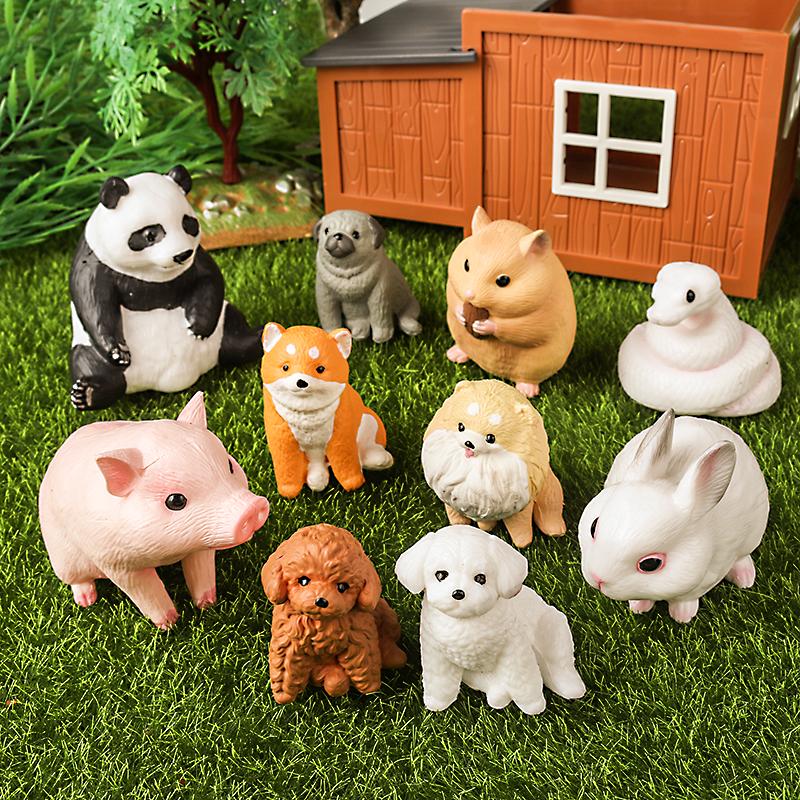 Характерная черта:Oenux Модель фермы Свинья Курица Кролик Шиба-ину Коза Фигурки Животные Птица Фигурка ПВХ Миниатюра Домашний декор Прекрасная детская игрушка
