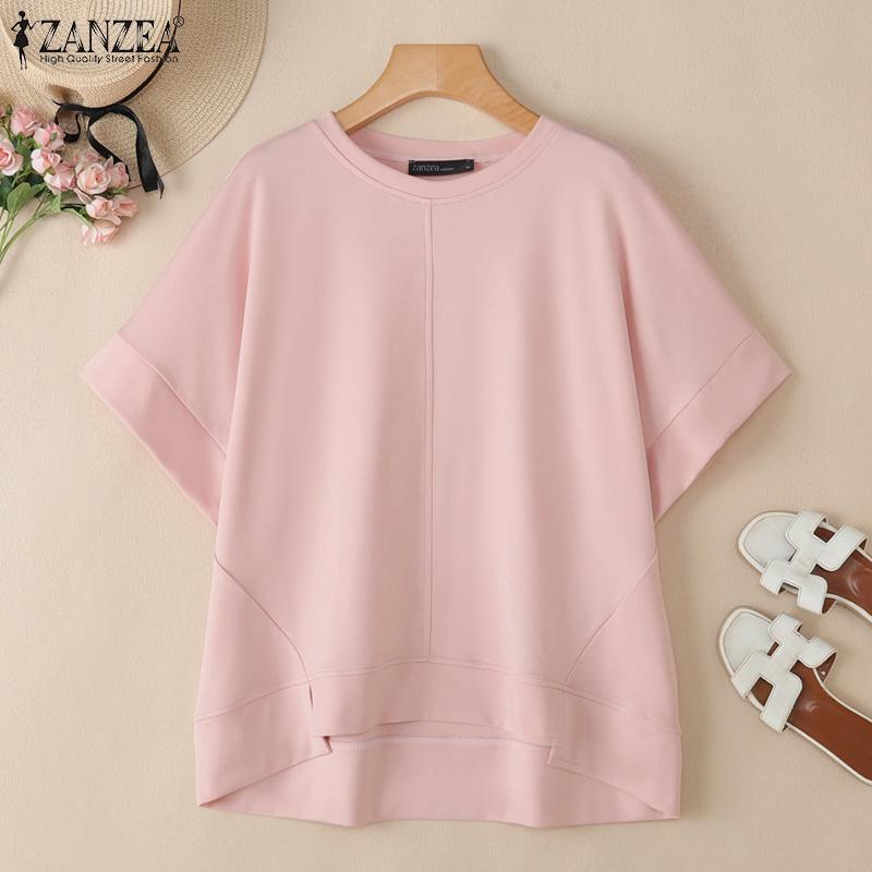 ZANZEA Женские повседневные футболки с круглым вырезом, однотонные, с рукавом до локтя — купить товар онлайн с бесплатной доставкой по всему миру!