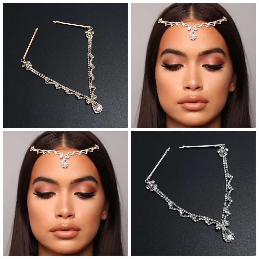 Стразы Свадебная Повязка на Голову Цепочка Узор Капля Воды Свадебный Кристалл Повязка на Лоб Цепочка на Голову