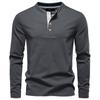 AIOPESON Мужская футболка с пуговицами и воротником хенли, однотонная, с длинным рукавом, базовая, новая, осенняя, премиум, 100% хлопок