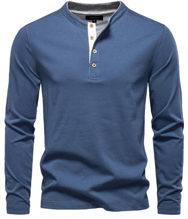 AIOPESON Мужская футболка с пуговицами и воротником хенли, однотонная, с длинным рукавом, базовая, новая, осенняя, премиального качества, 100% хлопок — купить товар онлайн с бесплатной доставкой по всему миру!