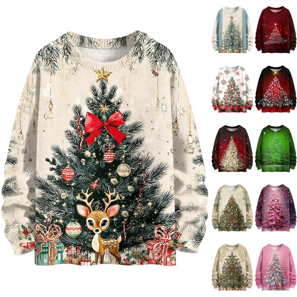 Рождественские толстовки для женщин Вязаный свитер Милая рубашка Осенний свитер с круглым вырезом Топы