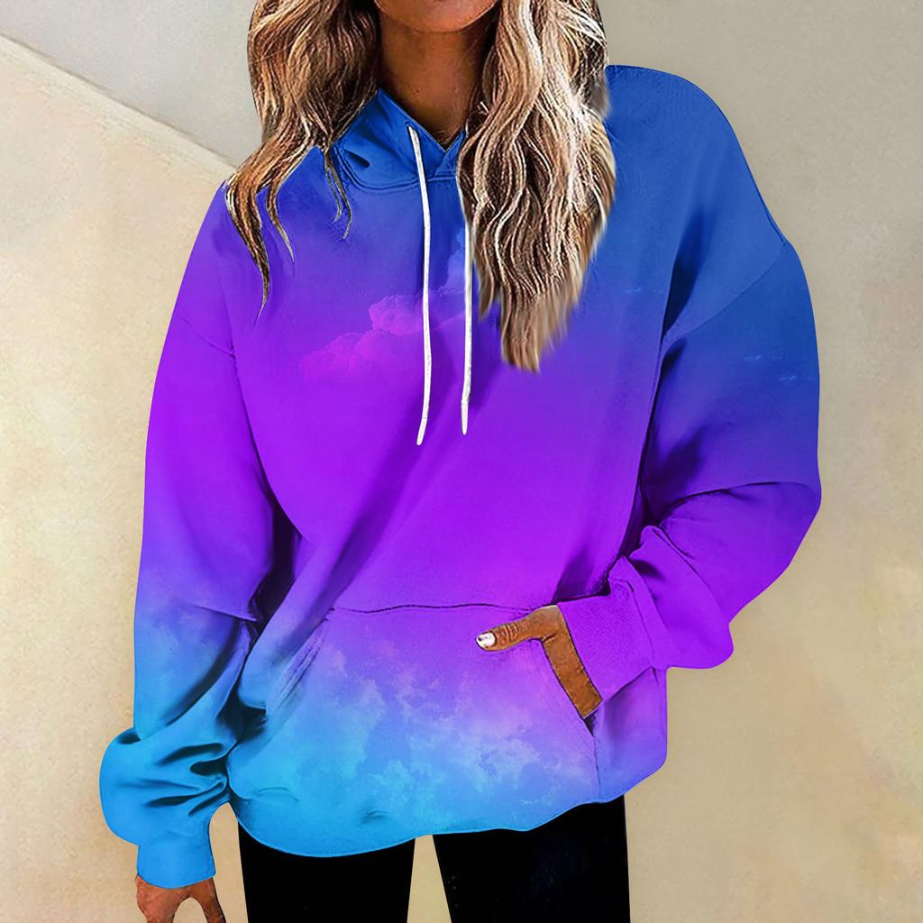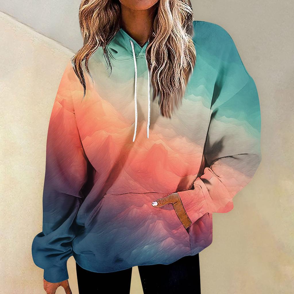 Женская мода Повседневные Универсальные Повседневные толстовки с круглым вырезом Графика Повседневные с длинным рукавом Градиент Лоскутная верхняя одежда с принтом Толстовки
