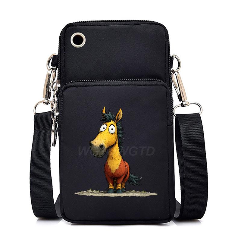 Смешные Животные Принт Личности Черная Косая Сумка Маленькая Многофункциональная Повседневная Портативная Сумка для Мобильного Телефона
