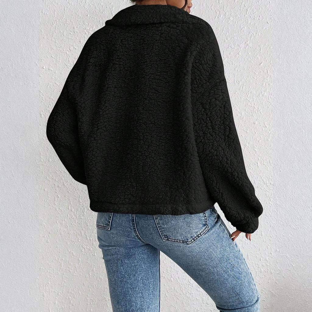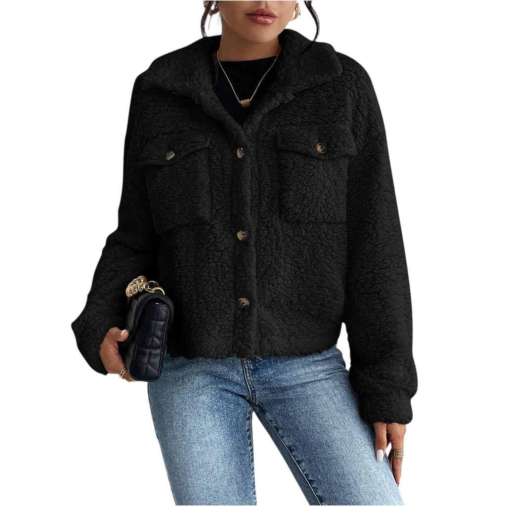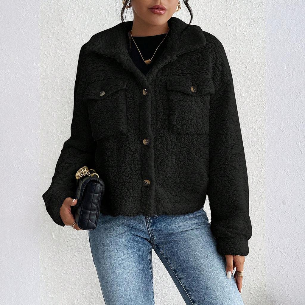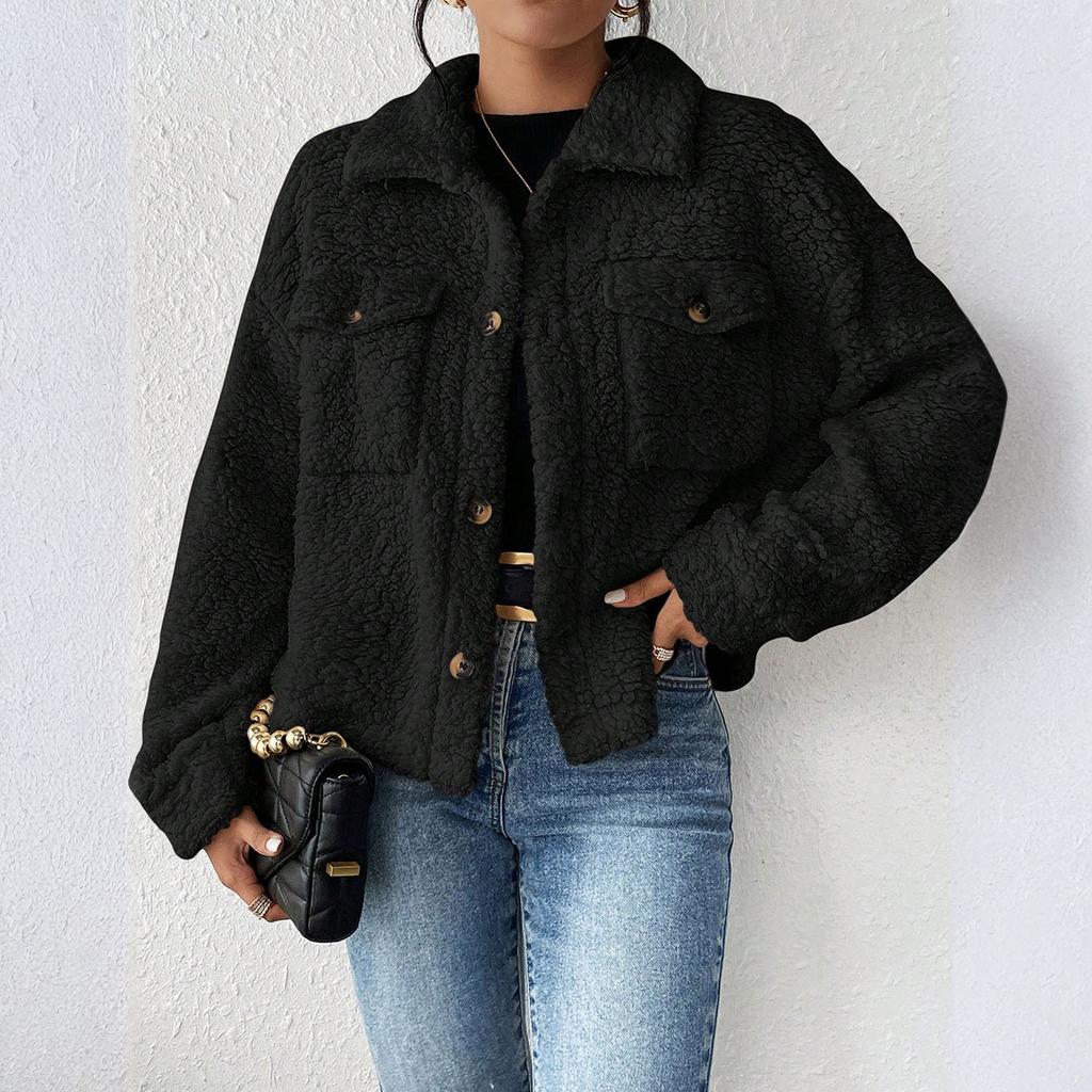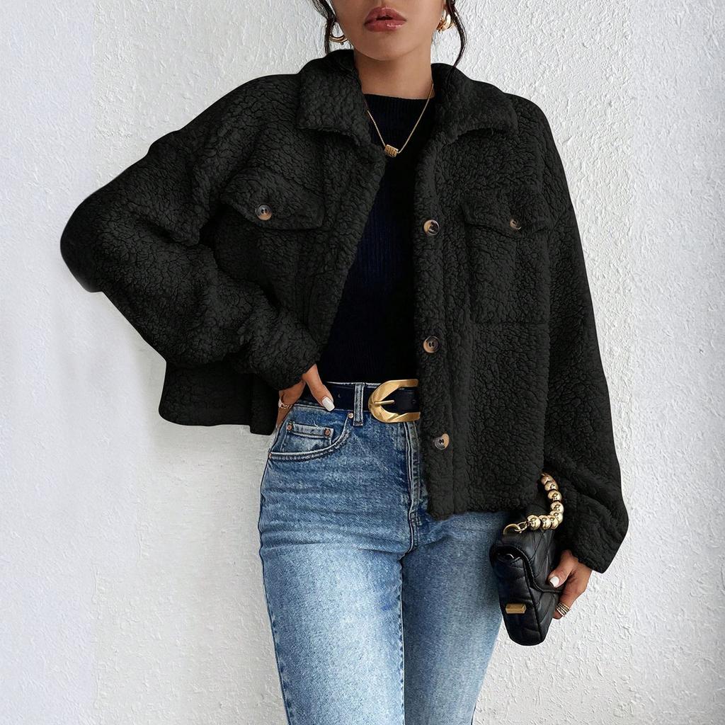 Женская модная однотонная куртка с длинными рукавами, лацканами, карманом и плюшевой отделкой, короткая, повседневная