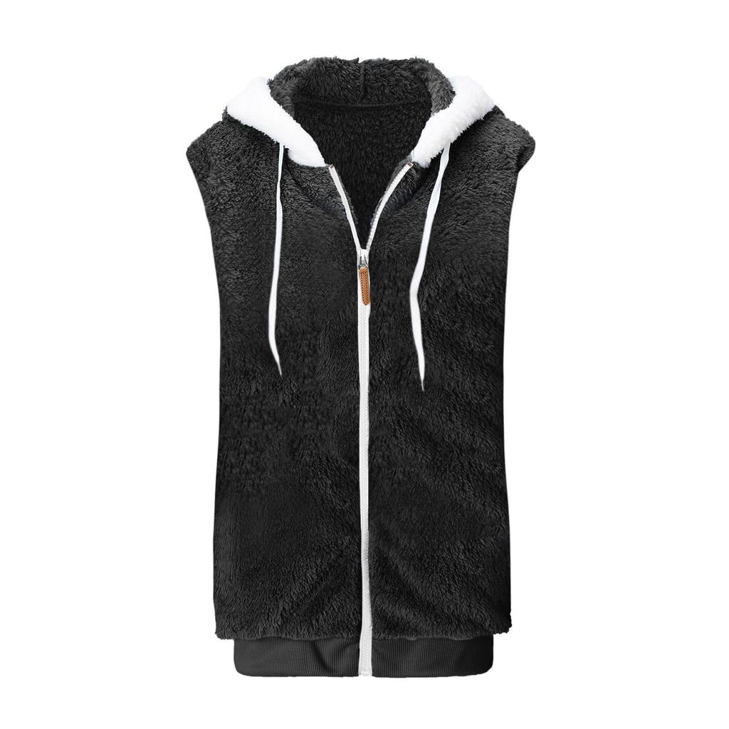 Женский модный однотонный плюшевый жилет без рукавов с капюшоном и карманом на молнии, свободного кроя, теплый