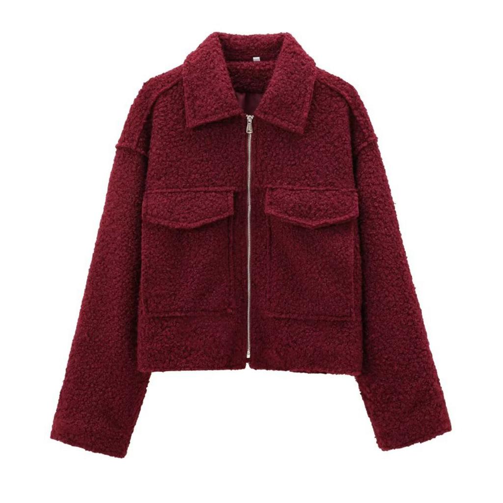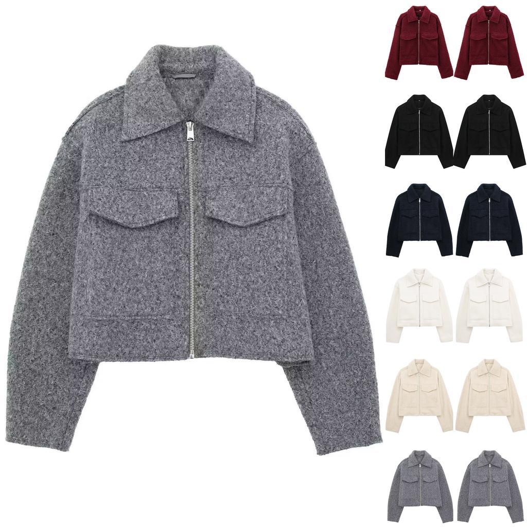 Женская модная короткая куртка из мягкой шерсти однотонного цвета