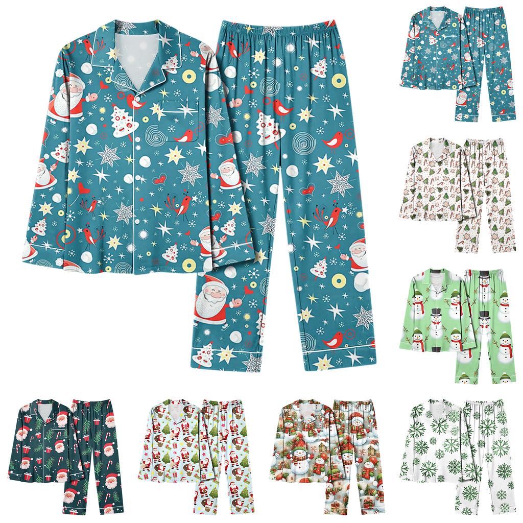 Женский повседневный модный комплект для дома с длинным рукавом и брюками с рождественским принтом